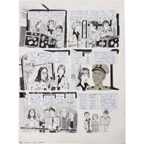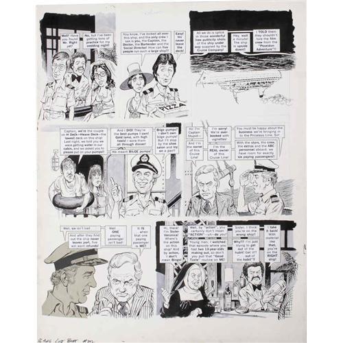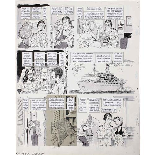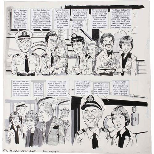 <B>Angelo Torres - Mad #202 Complete 6-page Story "Lust Boat" Original Art (EC, 1978).</B></I> The crew at <B>Mad</B></I> sink the crew of the Pacific Princess in this scintillatingly funny parody of "The Love Boat," by Angelo Torres. Captain Stubing, Julie McCoy, Doctor Adam Bricker, Gopher, and Isaac all get wet! The pages have an average image area of 16" x 20", and their condition is Excellent. <I>From the Mad Magazine Archives</B></I>.