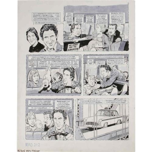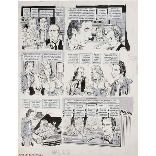 <B>Angelo Torres - Mad #212 Complete 6-page Story "Taxing" Original Art (EC, 1980).</B></I> The crew from the "Taxi" TV sit-com get left at the curb in this Angelo Torres send-up. The first page of this story has an image area of 17" x 17", and the rest of the pages have an image area of 17" x 21". The art is in Excellent condition. <I>From the Mad Magazine Archives</B></I>.
