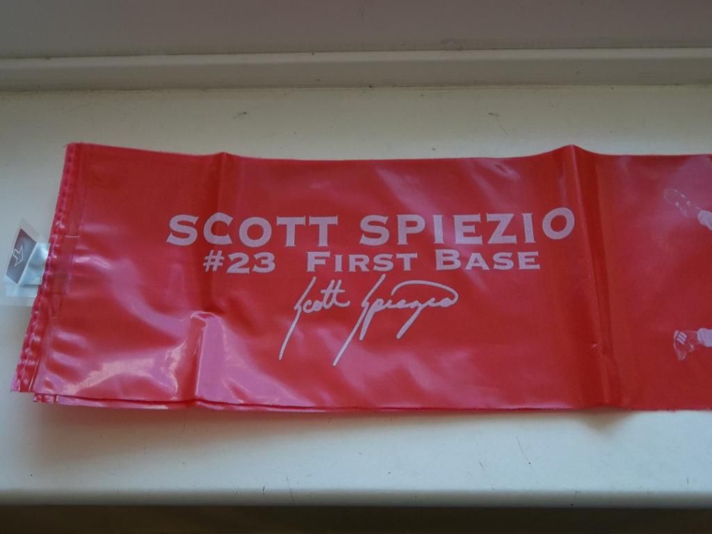 Red cheer stick with Scott Spiezio #23 picture and autograph on it