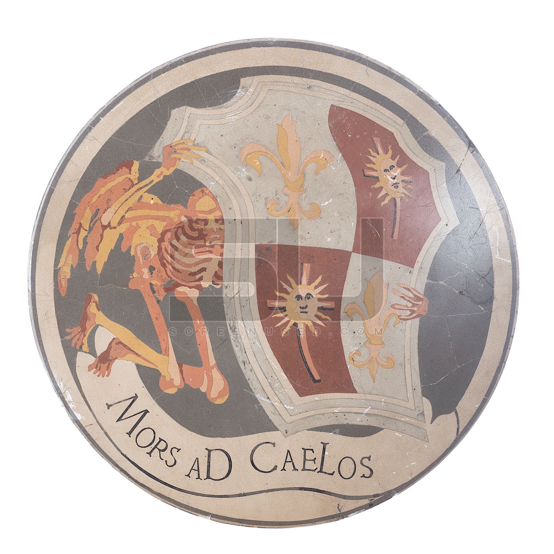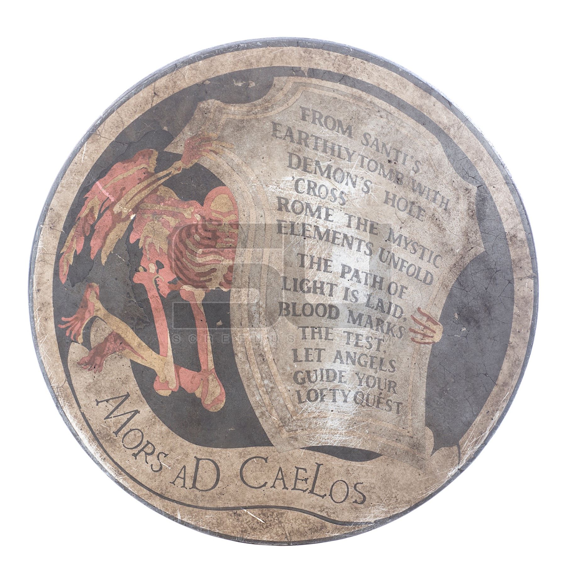 This cover was acquired by the production for use as the "Demon Hole" cover moved aside to gain access to the room below the floor. The piece is made of very heavy solid resin, and is painted on both sides. This is the hero cover as every mark and crack in the surface matches up exactly when seen in the close up during the film. The piece measures approximately 37" in diameter.