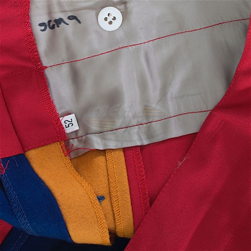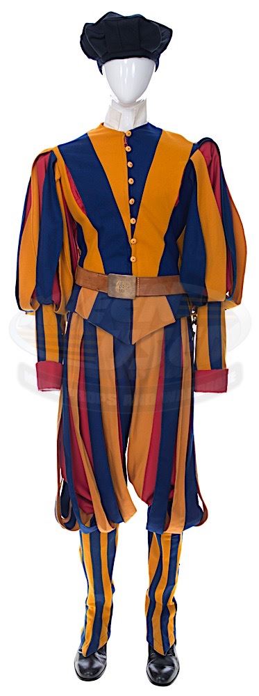 (Columbia Pictures, 2009) This uniform was custom-made by the production for use by an extra. The tri-color uniform consists of a coat with zipper closure that features buttons down the center, a flat white collar, a set of flat white cuffs, a black beret, a matching pair of pants, black suspenders, a leather belt with sword holster, a one piece resin sword and scabbard, a pair of boot covers and a pair of black leather boots.