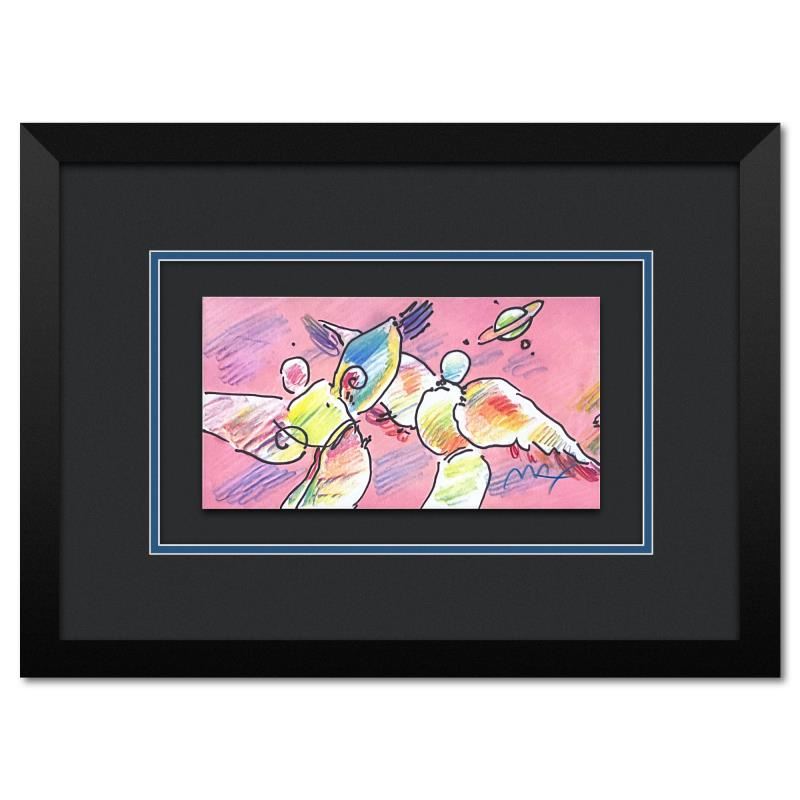 "Angels in Space" is a limited edition lithograph on paper by Peter Max, numbered and hand signed by the artist. This piece comes framed. Includes Certificate of Authenticity from Peter Max Studios. Measures approx. 16.5" x 22" (frame), 6.5" x 12" (image).