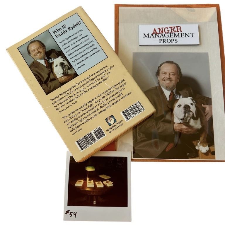 Original book, Hero book photo and continuity photo used on the Peter Segal directed buddy comedy film 'Anger Management' (2003), which tells the story of a businessman who is sentenced to an anger management program under a renowned therapist with unconventional methods.