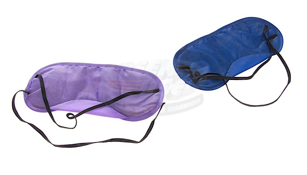 (Screen Gems, 2014) This set of sleeping masks were acquired by the production for use by Charlie Sheen as "Charlie Goodson" and Selma Blair as "Kate Wales". The blue and purple masks feature elastic head bands and remain in very good condition.