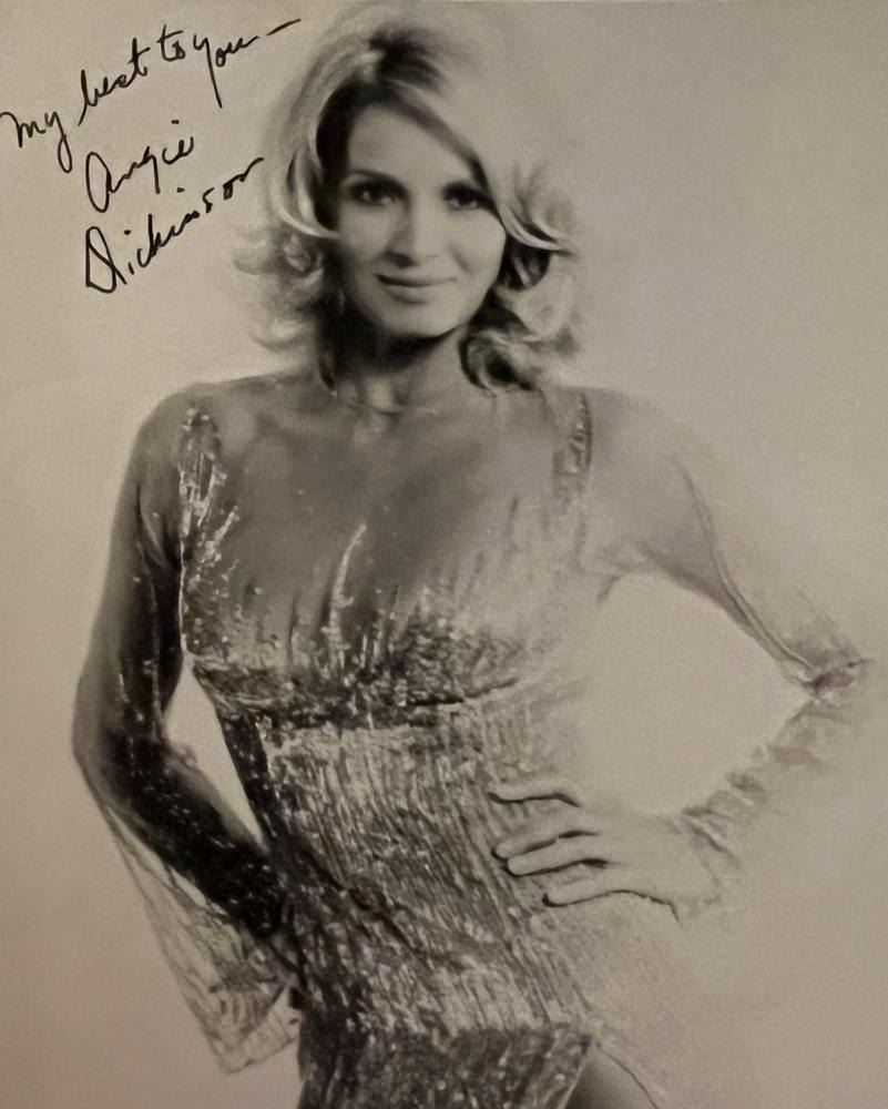 Angie Dickinson facsimile signed photo. 3x5 inches