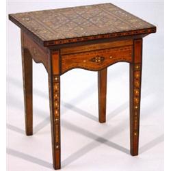 Anglo-Indian occasional table profusely inlaid with mother of pearl and ivory on tapering legs