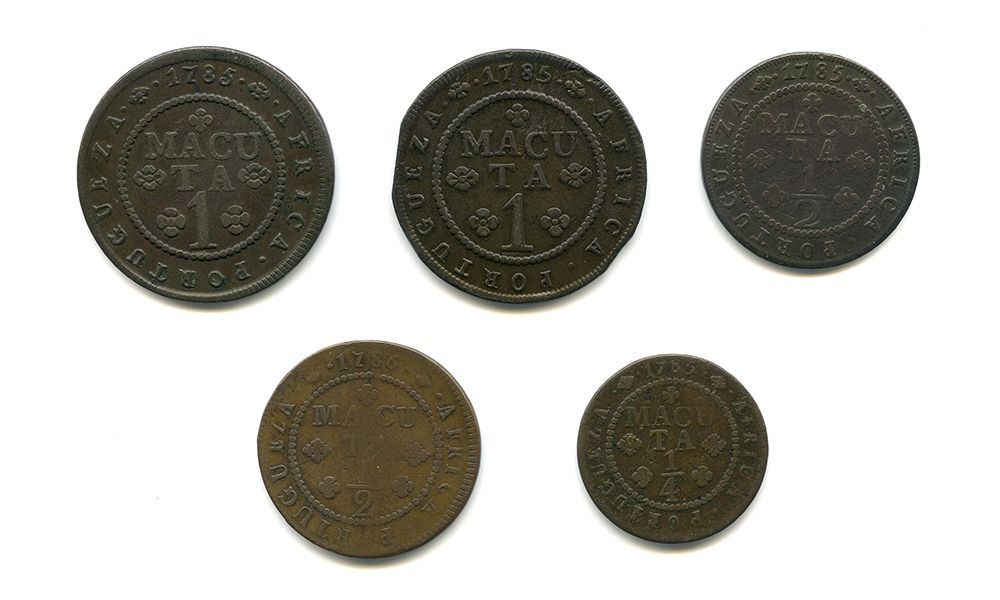 1 Macuta 1785 (03.03) MBC; 1786 (03.04) mossas BC/BC+; 1/2 Macuta 1785 esc.menor (02.02) BC+; 1786 (02.03) BC; 1/4 Macuta 1785 (01.01) BC