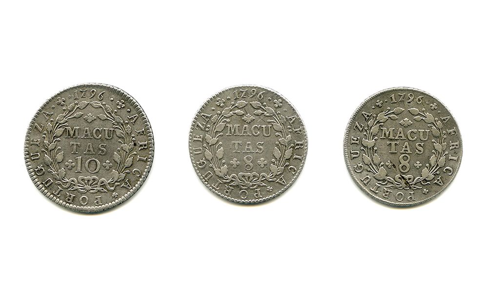 10 Macutas 1796 (08.01) lindo MBC; 8 Macutas 1796 d.l.s.4p (x2)(07.02) MBC e MBC-
