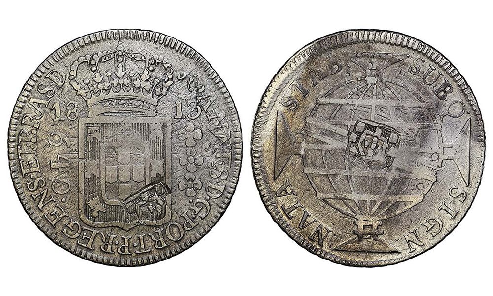 Carimbo “escudete” sobre 640 Réis 1813 R (AI P415) BC+