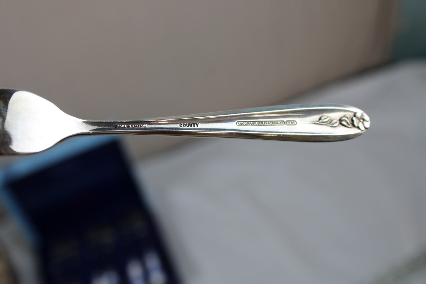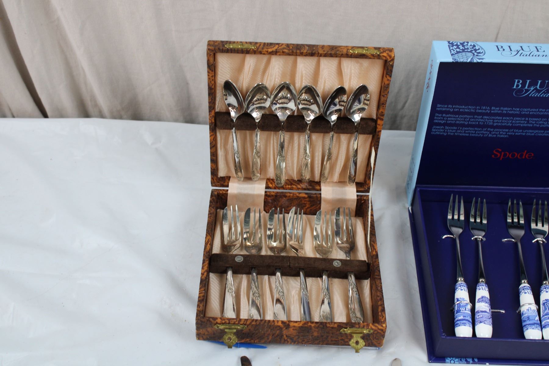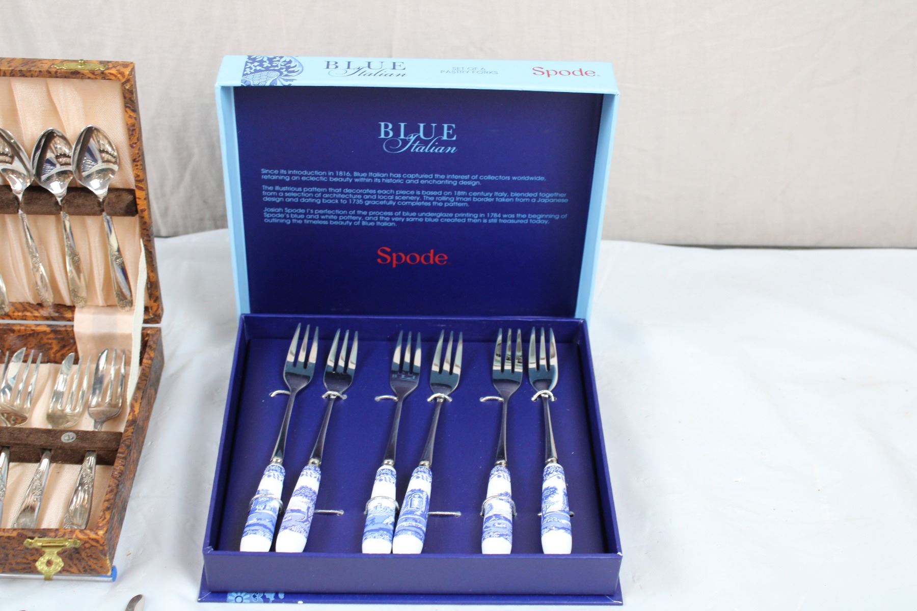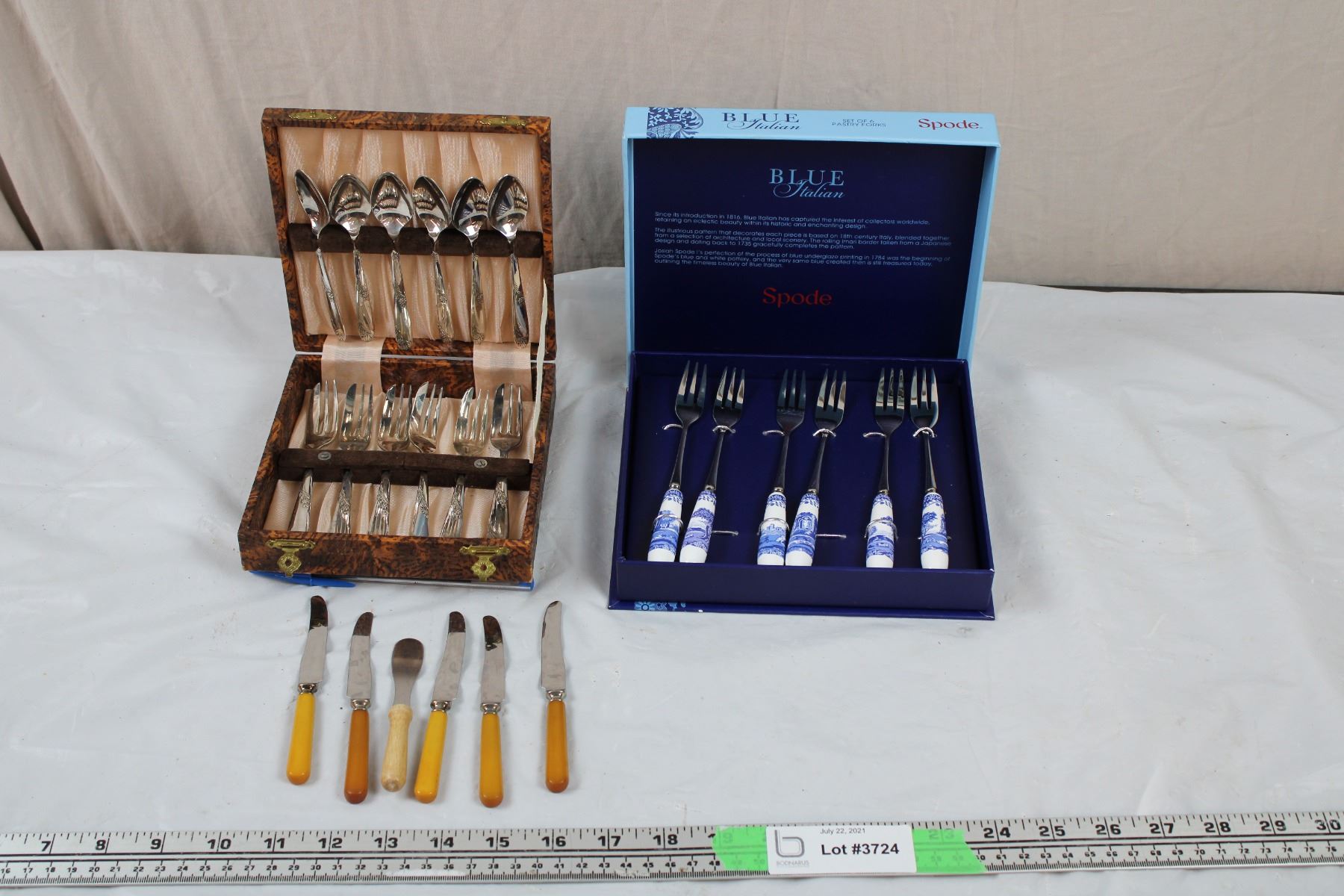 Angora Silverplate fork/spoon set + Miniature Butter Knife set + Royal Delft Blue Italian Spode Fork