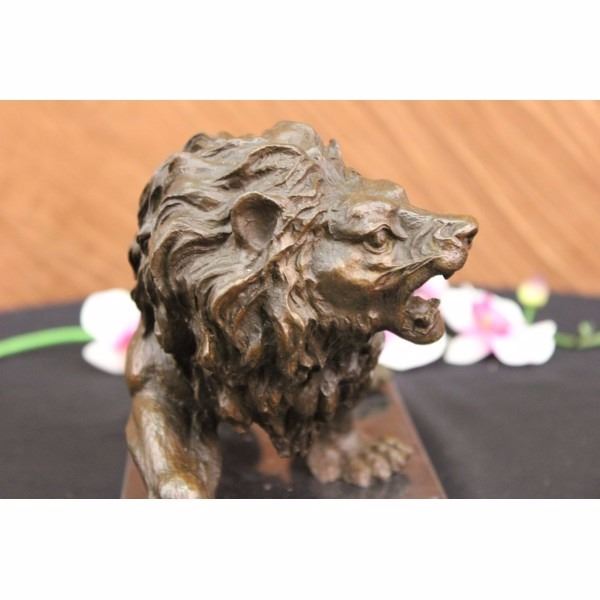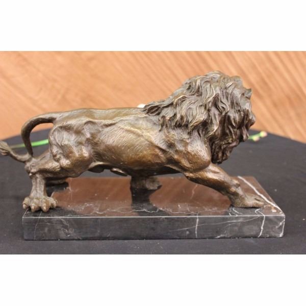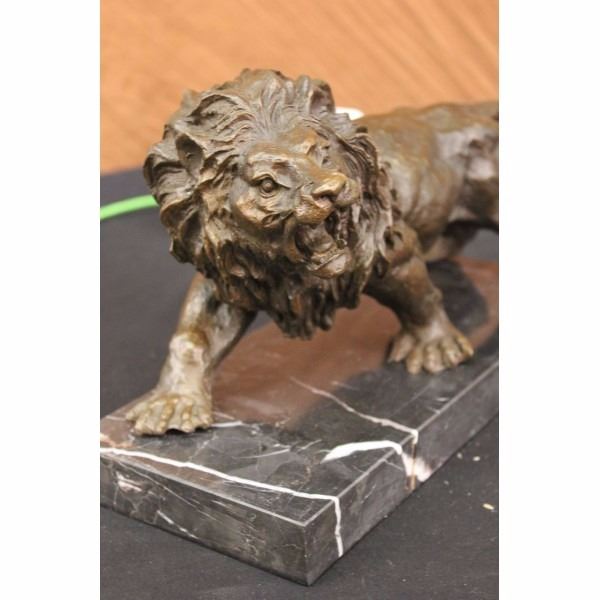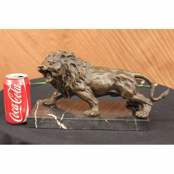He'S Angry, Hungry, And Unrelenting. The Lion'S Paws Grip The Ground, The Tension Spreads Like A Current From His Paws To All The Tendons In His Body. His Mouth Is Open Wide In What Can Only Be A Ferocious Roar Meant To Intimidate And Warn The Prey That Its End Is Near. This Piece Was Cast Using The Lost Wax Method. It Stands On A Smooth Black Marble Base. Bronze Dimensions With Marble Base: Height 8 X Width 14 inches. Weight: 12 Lbs.