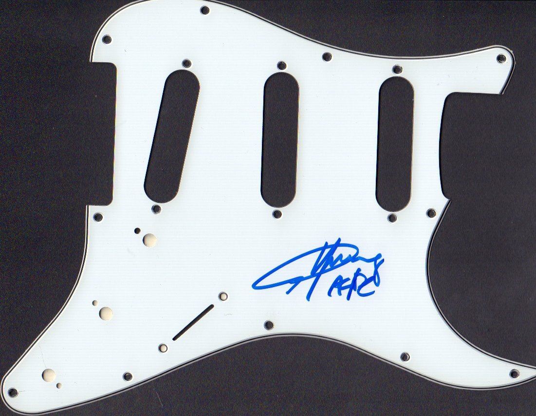 Fender electric guitar pickguard signed by AC/DC founder Angus Young. All items come with a certificate of authenticity good for the life of the piece.