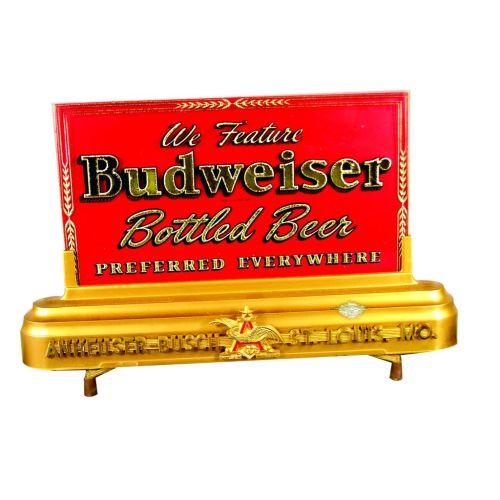 Anheiser Busch Budweiser Bottled Beer Countertop Light Up sign. Square top corners. Spot of corrosion on the base, otherwise excellent original condition and works. 16 1/2 x 11 x 3 inches.