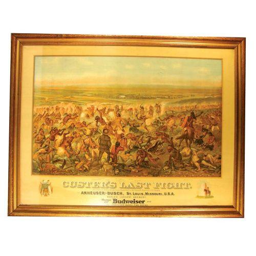 Anheuser-Busch, St. Louis, MO. Entitled Custers Last Fight. Framed under glass, excellent condition. 42 X 31 1/4 inches overall.