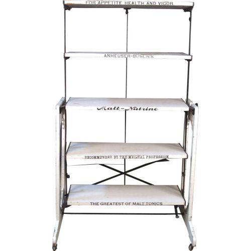 Anheuser Busch Malt Nutrine folding display shelf cast iron sides 5 shelves 58" tall