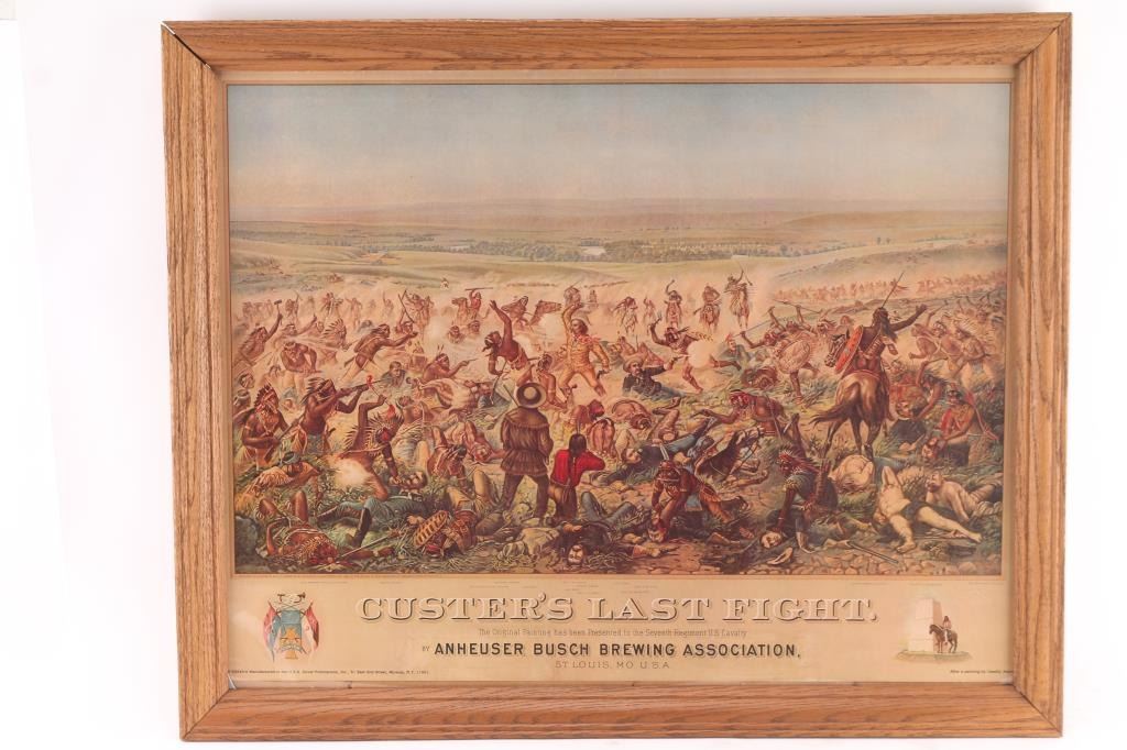 Entitled Custard's Last Stand. Old printing in oak frame. Measures 28 x 21".
