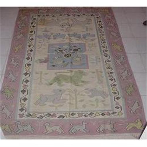 Carpet 5' 9" x 9'. Numerous animals pictured. Vine and animal border.