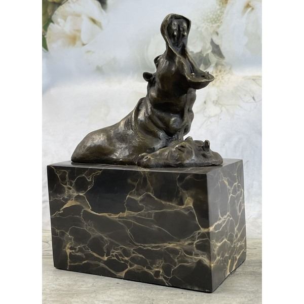 The hippopotamus is sacred in Egyptian and African traditions as a link to spirit, art and the healing realms of water. Our braying Art Deco-inspired Hippo statue rewards viewers with a vibrant portrayal of this powerful subject. Dimensions: Height 8 X Width 5 inches. Weight: 6 LBS.