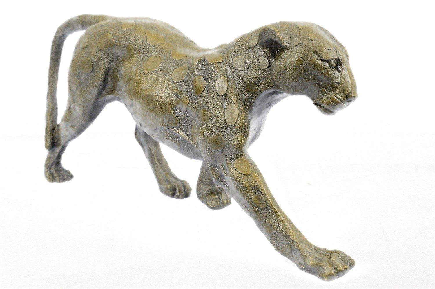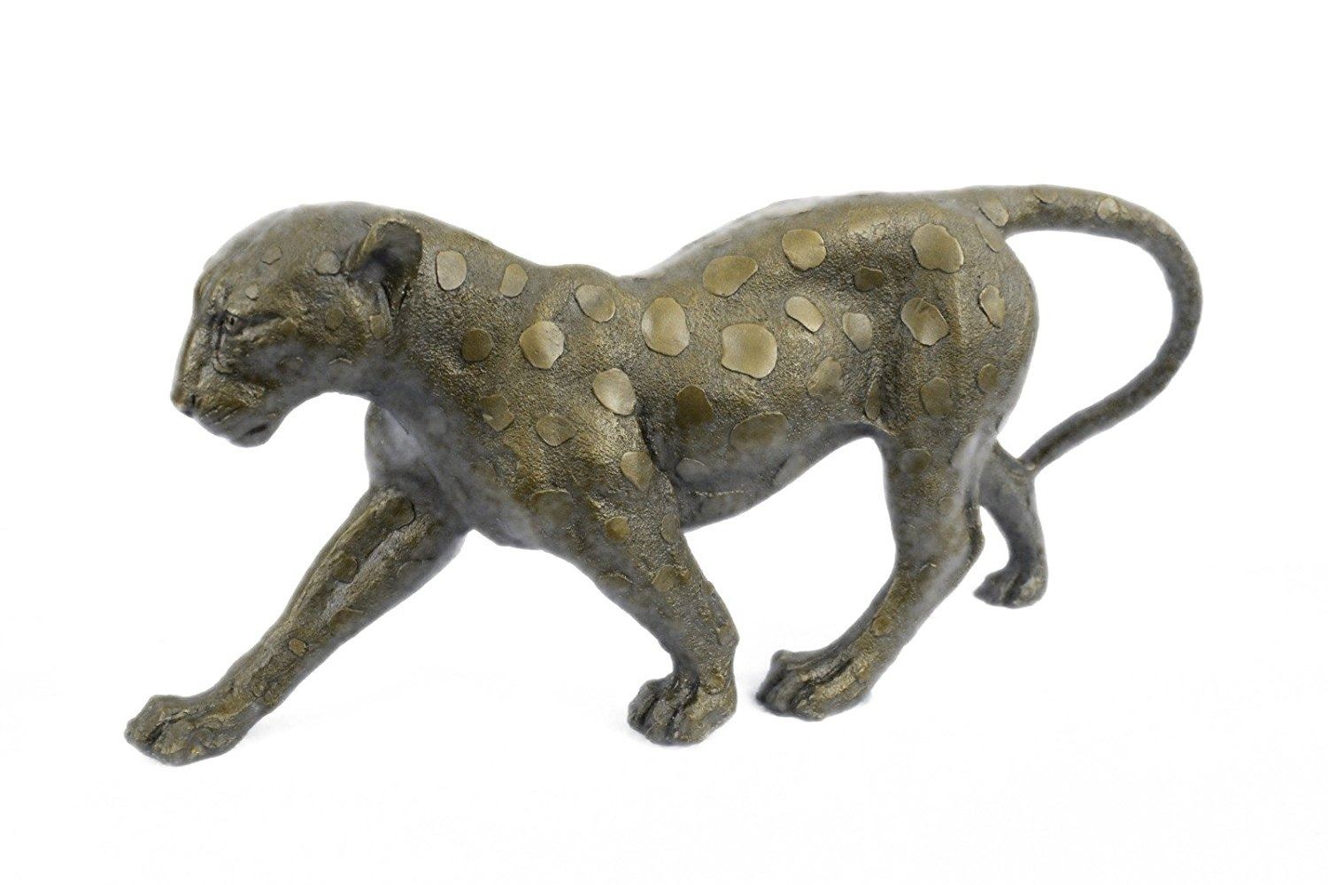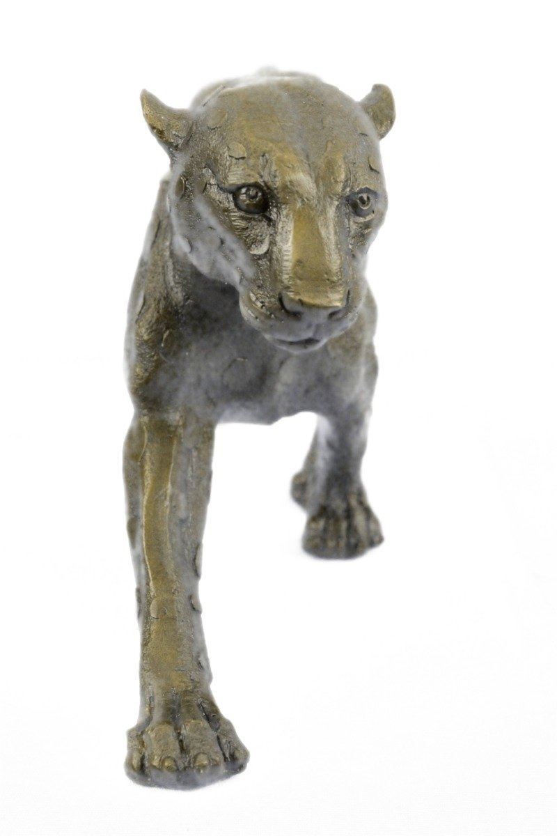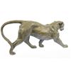 Her muscles flex as she walks across the open fields. This sculpture draws you in to the action and lets your imagination run wild as you join her on her walk across the wide open plains of the outdoors. This amazingly detailed sculpture portrays the Cougar stride beautifully as she transitions her paw and her weight while walking. Her facial expression shows calm, cool, and playful as she paws at the ground.A suiting soft brown patina highlights the muscles on the tigers legs, paws, head. The head of the tiger is beautifully detailed right down the shape of the skull, jaw line, ears and facial structure. This bronze sculpture was castes using the Lost was Method. This Sleek and Graceful piece is perfect for the wildlife lover in you. Bronze Dimensions: Height 7 X Width 16 inches. Weight: 9 LBS. Inventory: 29YDW0544992