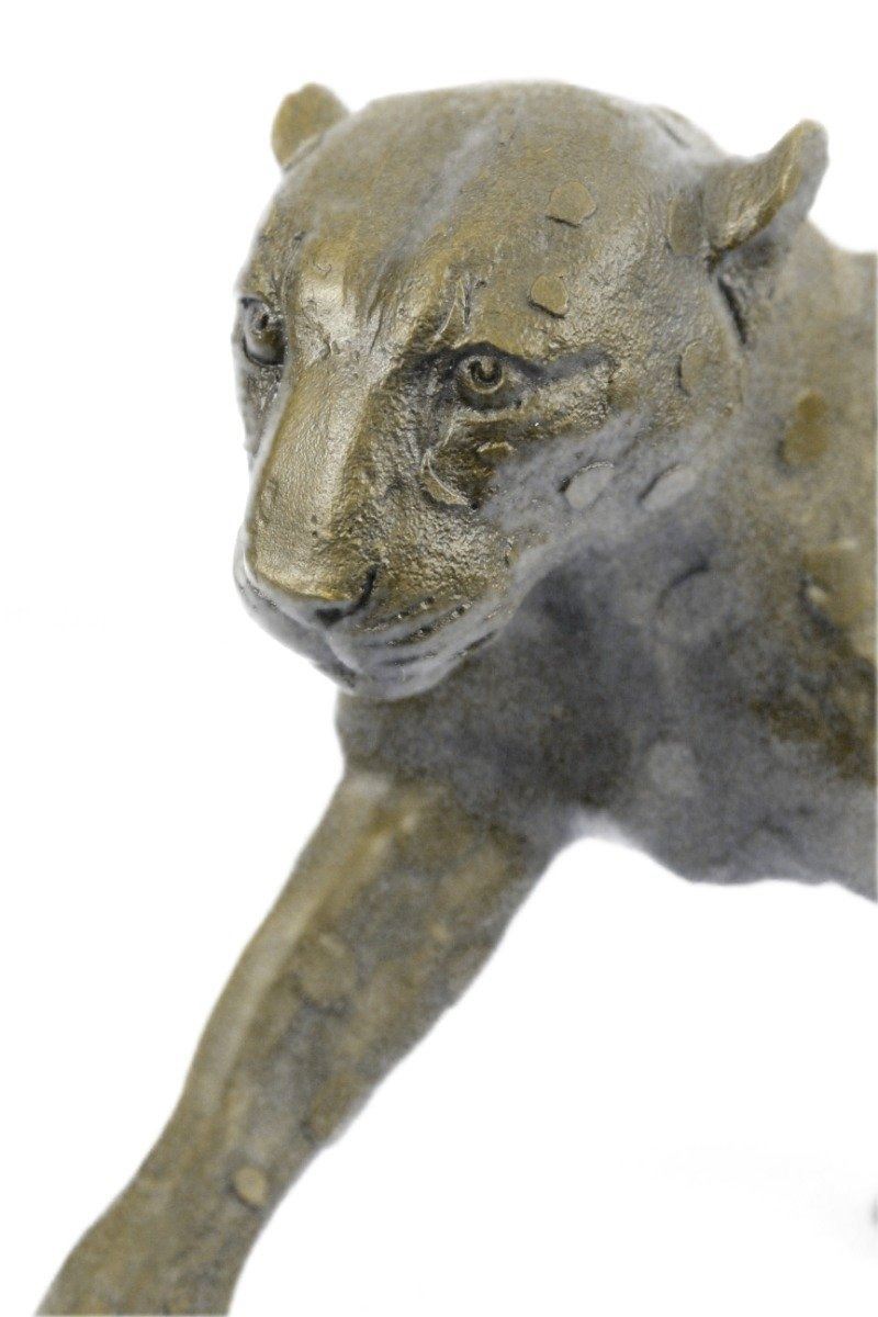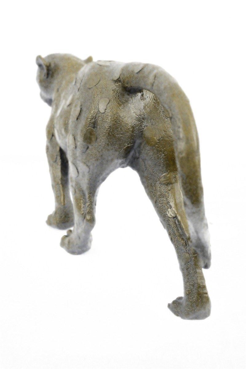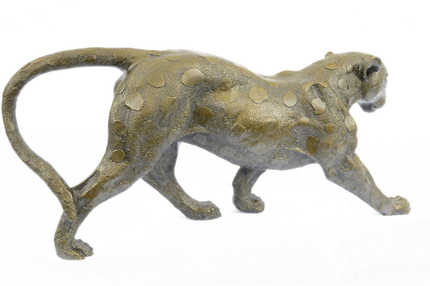 Her muscles flex as she walks across the open fields. This sculpture draws you in to the action and lets your imagination run wild as you join her on her walk across the wide open plains of the outdoors. This amazingly detailed sculpture portrays the Cougar stride beautifully as she transitions her paw and her weight while walking. Her facial expression shows calm, cool, and playful as she paws at the ground.A suiting soft brown patina highlights the muscles on the tigers legs, paws, head. The head of the tiger is beautifully detailed right down the shape of the skull, jaw line, ears and facial structure. This bronze sculpture was castes using the Lost was Method. This Sleek and Graceful piece is perfect for the wildlife lover in you. Bronze Dimensions: Height 7 X Width 16 inches. Weight: 9 LBS. Inventory: 29YDW0544992