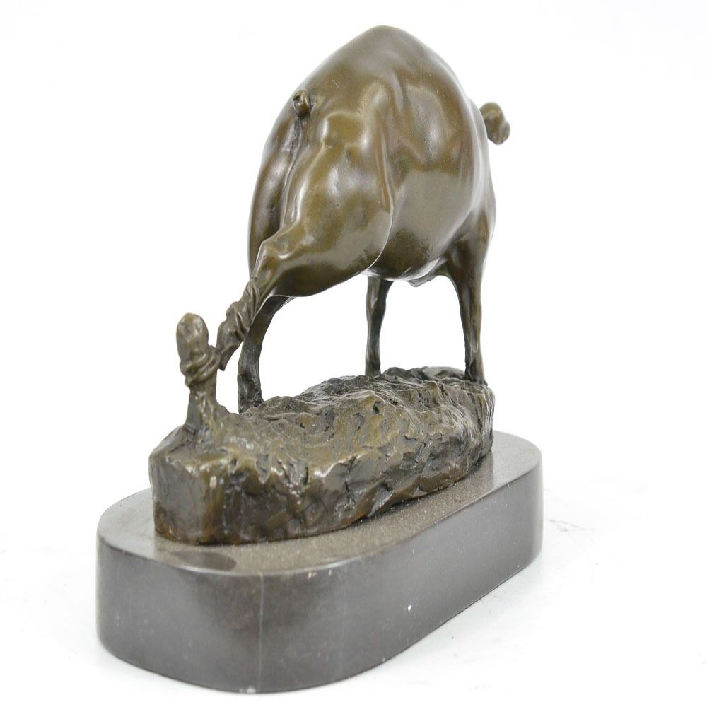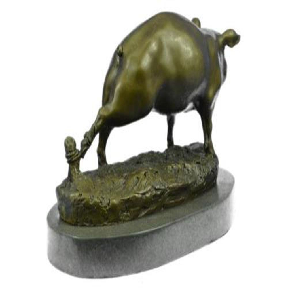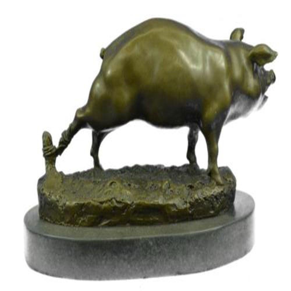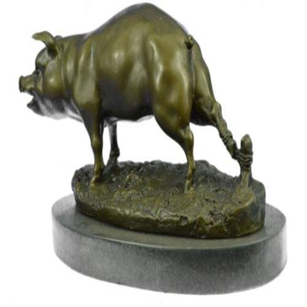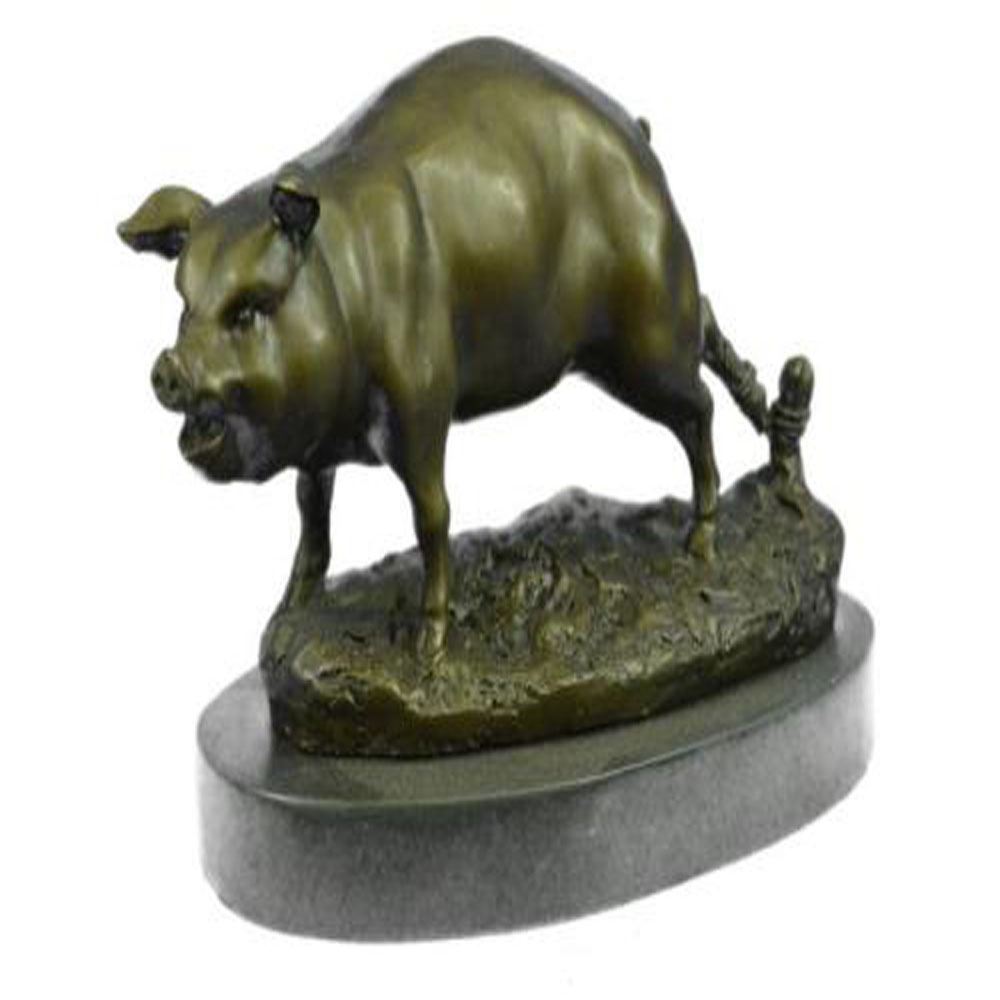 Pigs are omnivores, and despite their reputation for gluttony, they are generally social and intelligent animals. Whether they are adored, feared, or eaten, pigs have constantly had a place in many cultures dating back to ancient Mesopotamia. Whatever your beliefs, it is hard to deny the cuteness of this small-tailed, snouted, creature. This is an excellent piece featuring the lost wax method of casting, founded thousands of years ago ensuring an exquisitely detailed sculpture that will add grace and beauty to your business or home. Dimensions: Height 8 X Width 12 inches. Weight: 10 LBS.