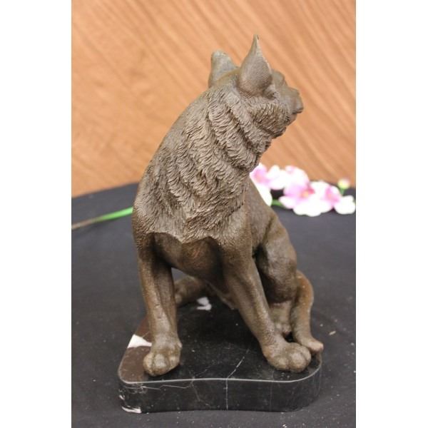 The Friendly Cat Sits Outside In The Twilight Of The Night After Taking A Long Cat Nap. It Sits With Its Tail Wrapped Up Around It'S Back Legs As It Looks Back At It'S Owner That Calls It In For A Tuna Dinner. Cats Stand For Deep Understanding In This Natural World, As If A Physic Mind Was In Them. The Symbolic Significance Of Cats Has Is An Ancient History. Some Meanings Are Astuteness, Clever, Mysterious, Intelligence, Intuition, Supernatural, And Independence. Often, When A Cat Makes An Uncommon Appearance In Our Lives, It Is A Message For Us To Shake Up Our Habitual Routines And Make Some Fresh Changes In Our Lives. The Handmade Bronze Sculpture Was Molded Using The Ancient Method Of Lost-Wax Casting And Stained With A Brown Patina Finish For Preservation. It Is Mounted Upon A Black Marble Base With The Artist Milo'S Signature. The Artist Milo Lived Most Of His Childhood In Andalusia, Spain. Influenced By An Artistic Family Background, He Began Sculpting At The Age Of Seventeen. After Apprenticing With Several Accomplished Sculptors Both In America And Spain, He Began His Own Work Focusing Equally On Steel And Bronze. Bronze dimensions with marble base: Height 12 X Width 8 inches. Weight: 12 lbs.Please Note: This is a reproduction bronze sculpture from the original molded and signed. This featured bronze sculpture is a recast after the original, and has been done recently. This 100% bronze sculpture is an abstract piece certain to be a conversation piece.Please Note: This is a reproduction bronze sculpture from the original molded and signed. This featured bronze sculpture is a recast after the original, and has been done recently. This 100% bronze sculpture is an abstract piece certain to be a conversation piece.