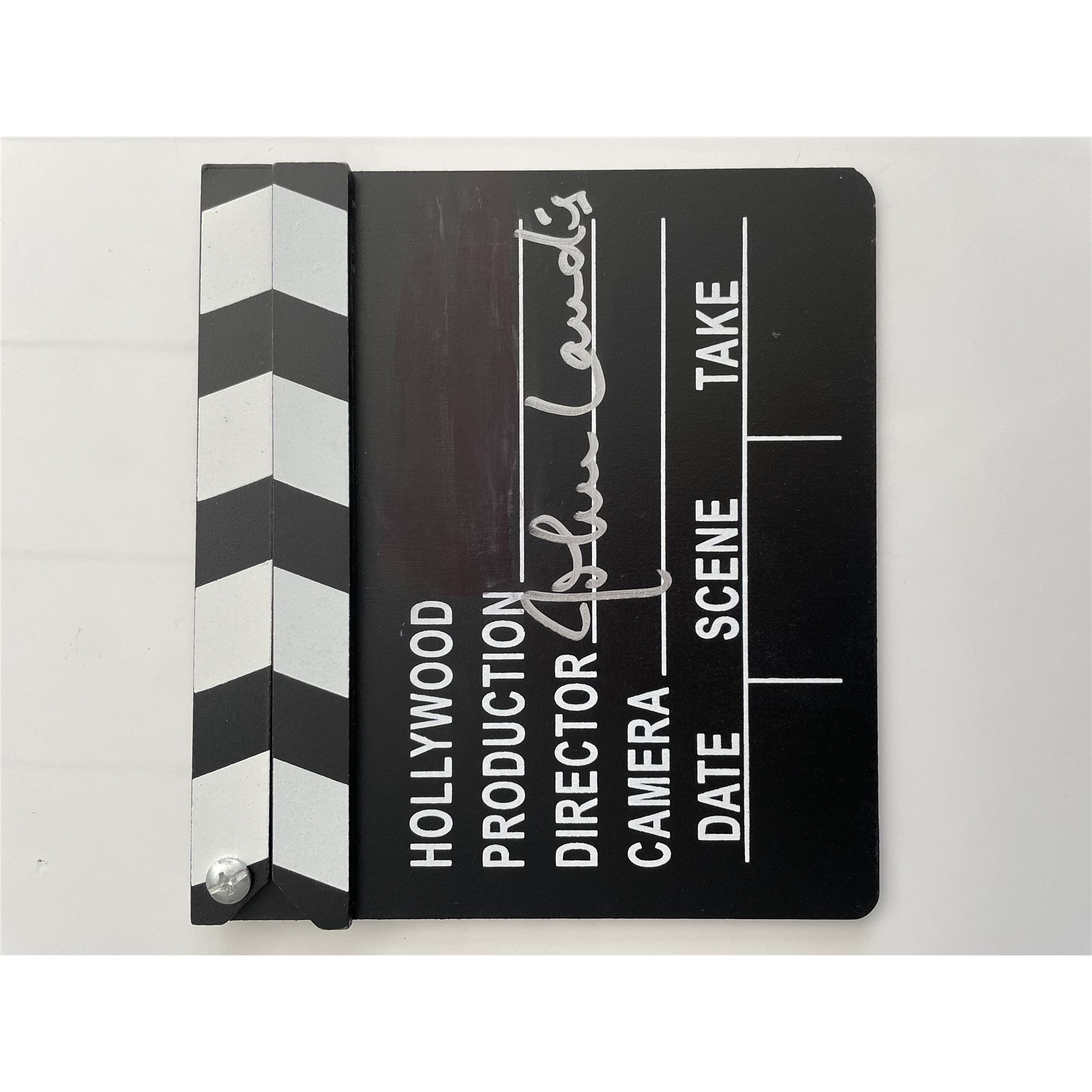 John Landis signed movie clapperboard. 7x8 inches