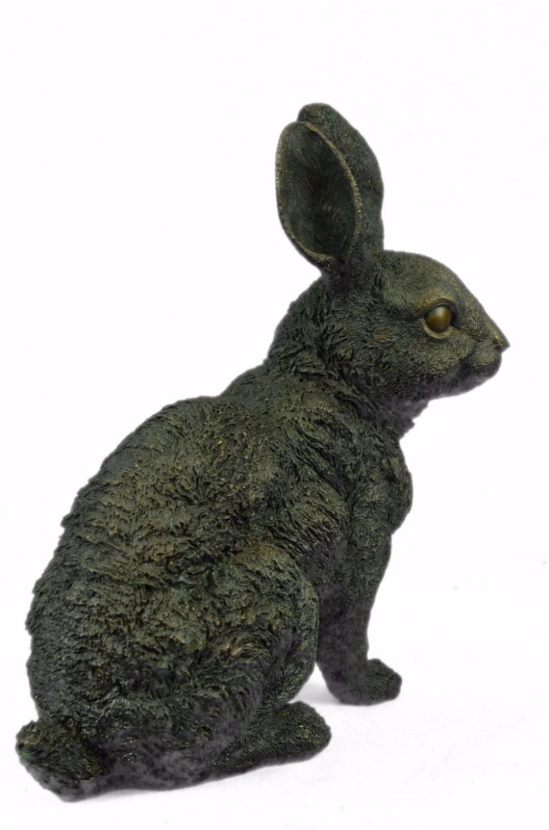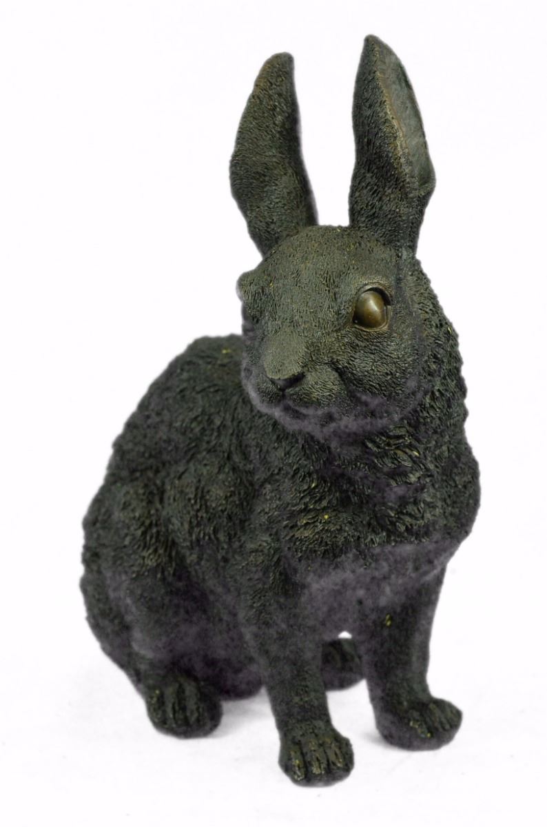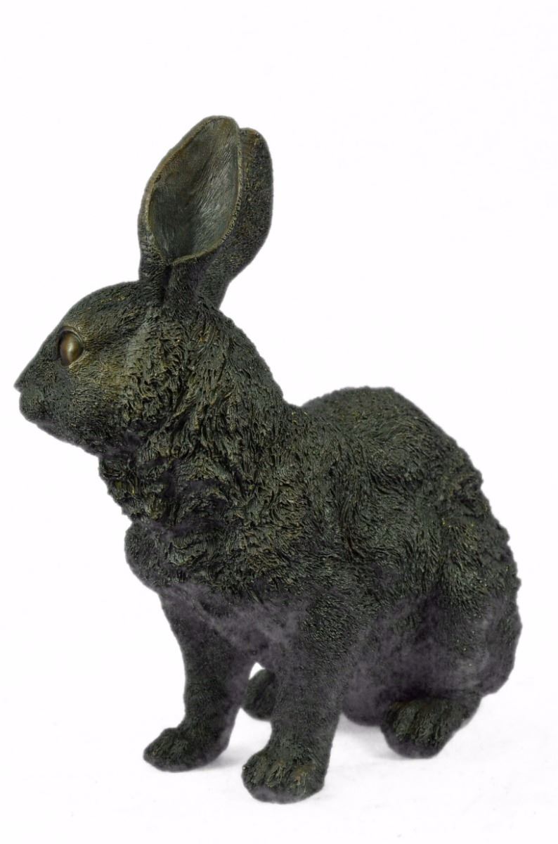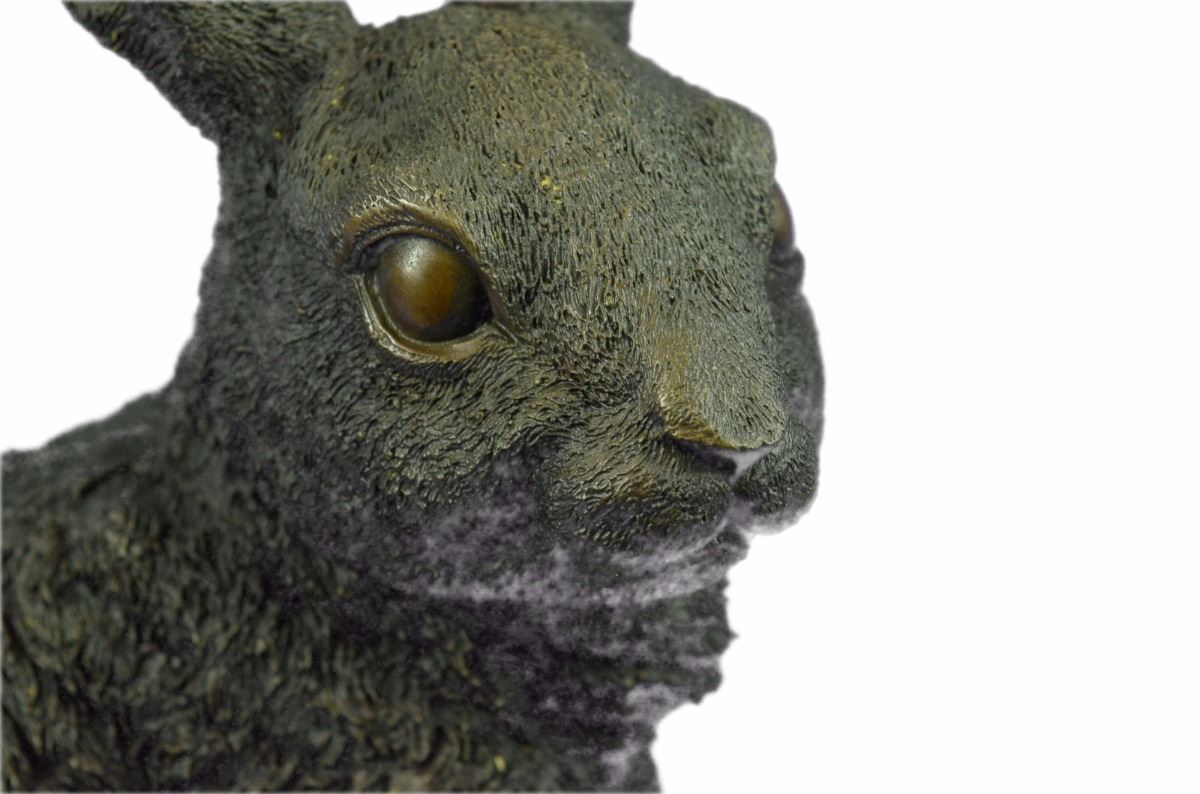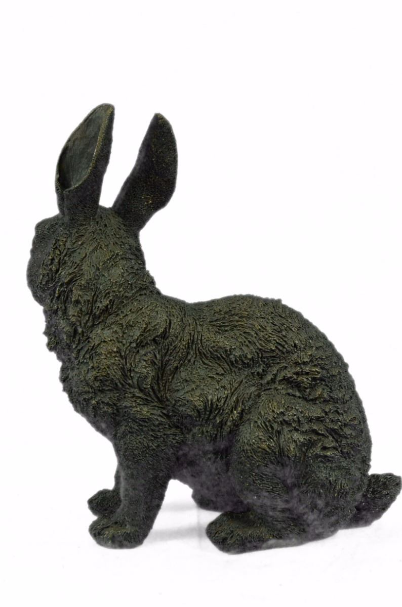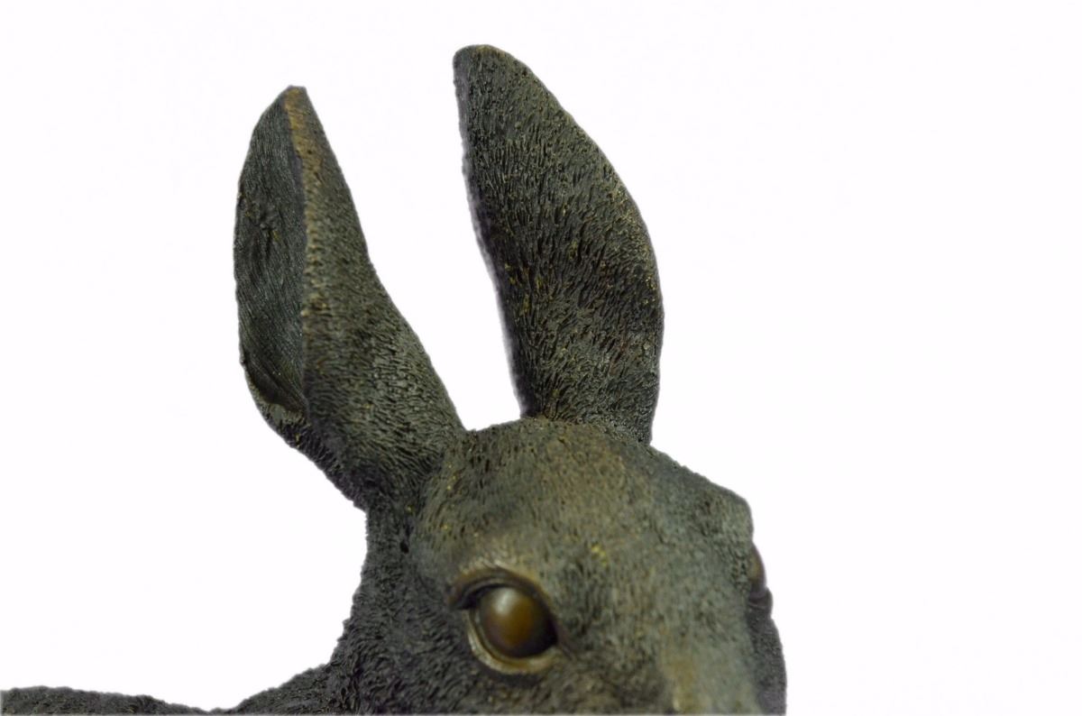 This Cute Lil Fellow Looks Up With The Sweetest Look . This Little Rabbit Is The Perfect Touch Of Décor For A Sweet And Cute Look. His Ears Are Long And He Sits On His Hind Legs While Looking Up With Full Attention. His Facial Features Are Great Giving Him A Little Character And Capturing A Sweet Look. This Is A Perfect Gift To Give Around Spring Time And Easter. This Sculpture Was Cast Using The “Lost Wax Method” And Has A Brown Patina And Is Mounted On A Black Marble Base. Bronze Dimensions: Height 13 X Width 12 inches. Weight: 15 Lbs.