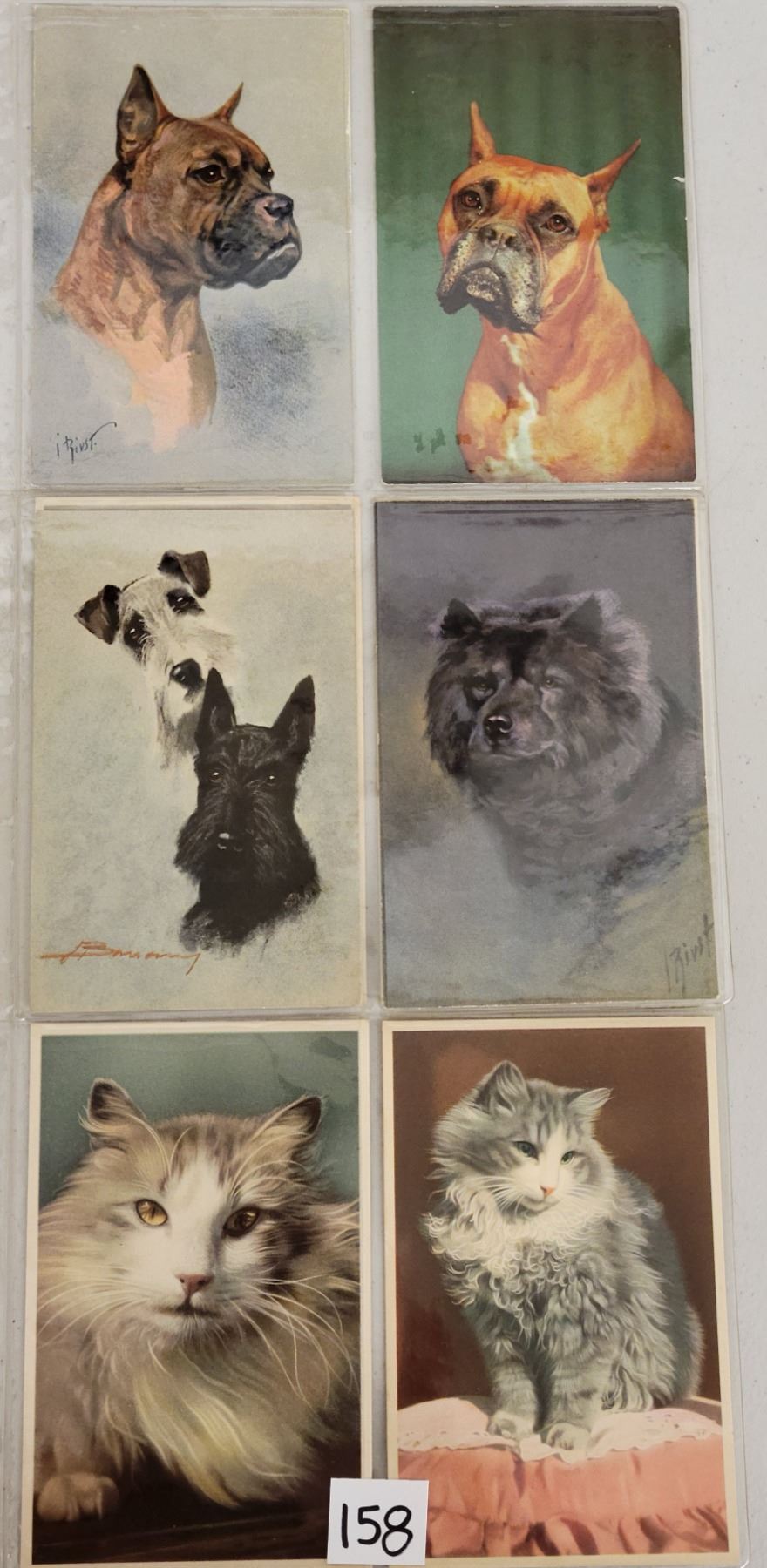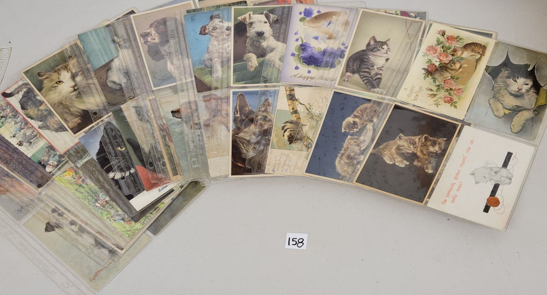 Approx. 60 postcards of cats & dogs. Early to standard size chrome. A few Mainzer postcards.