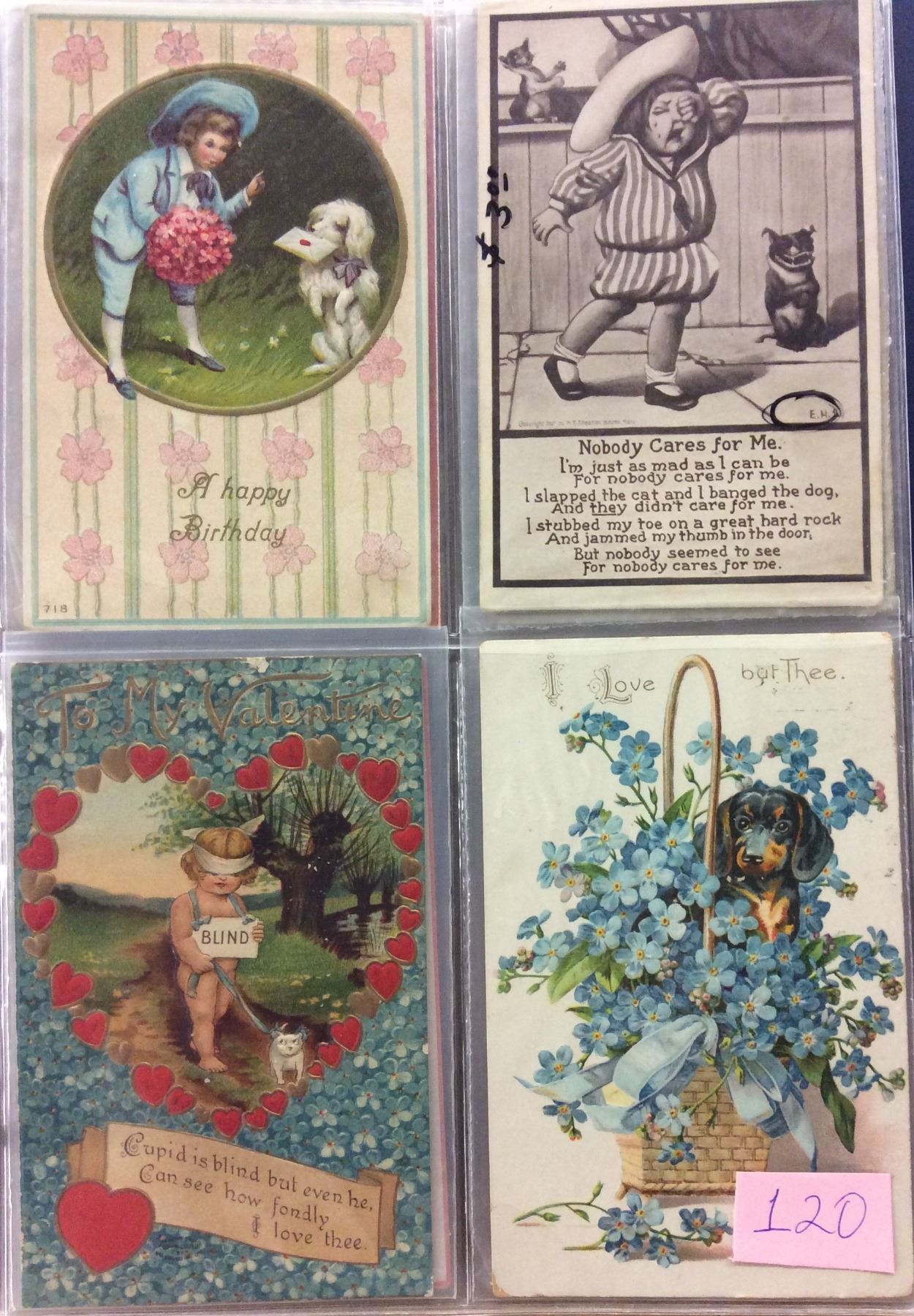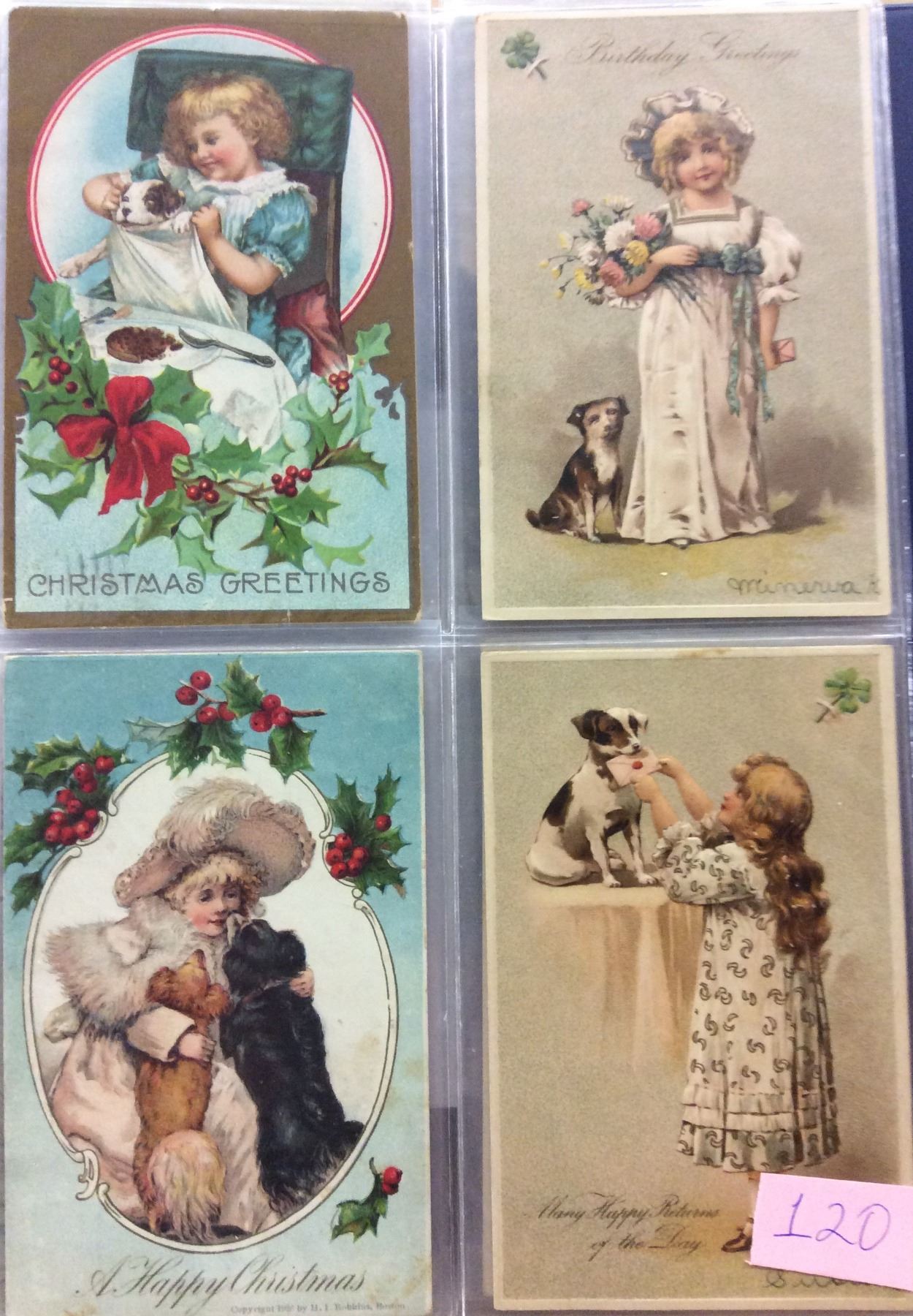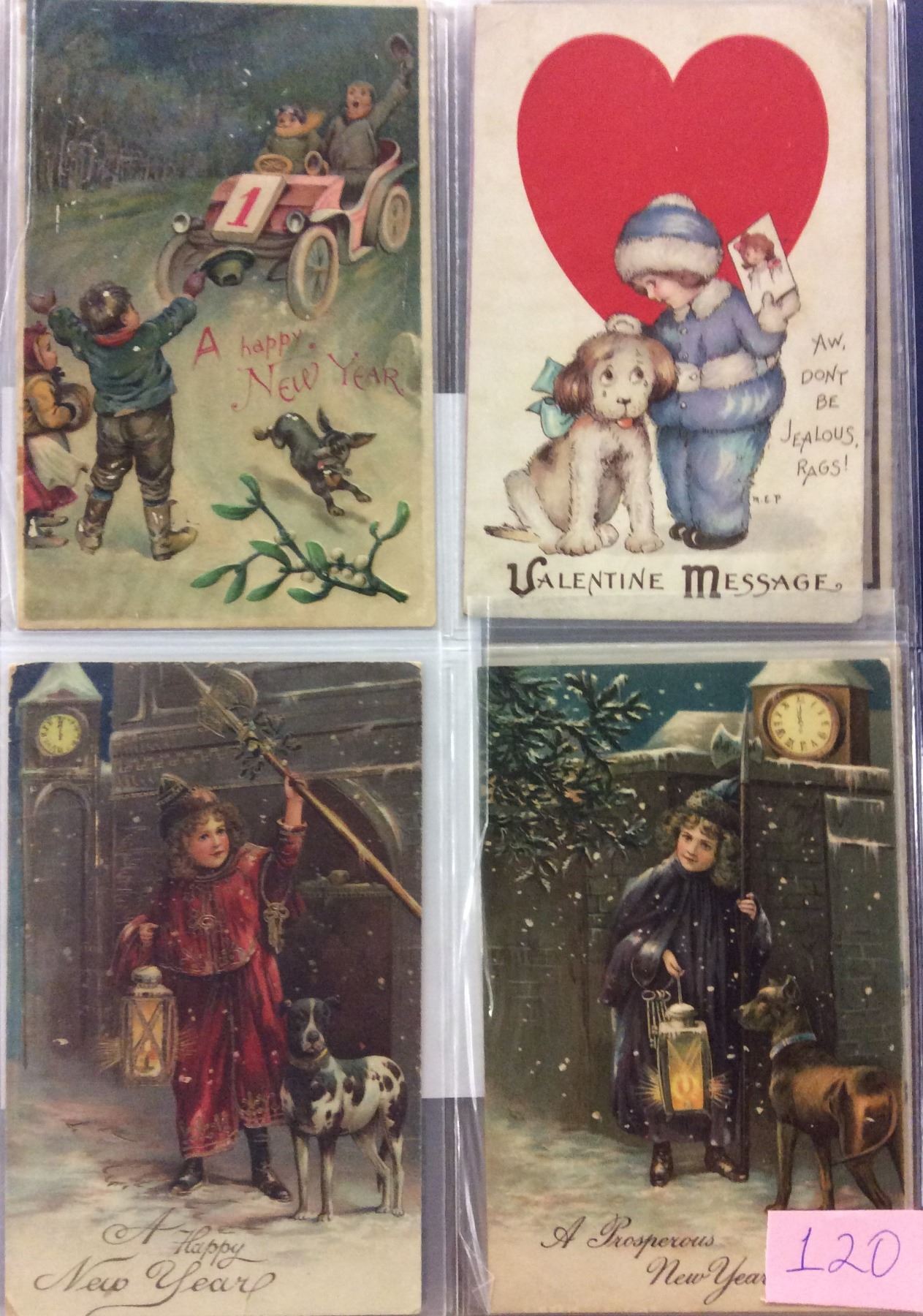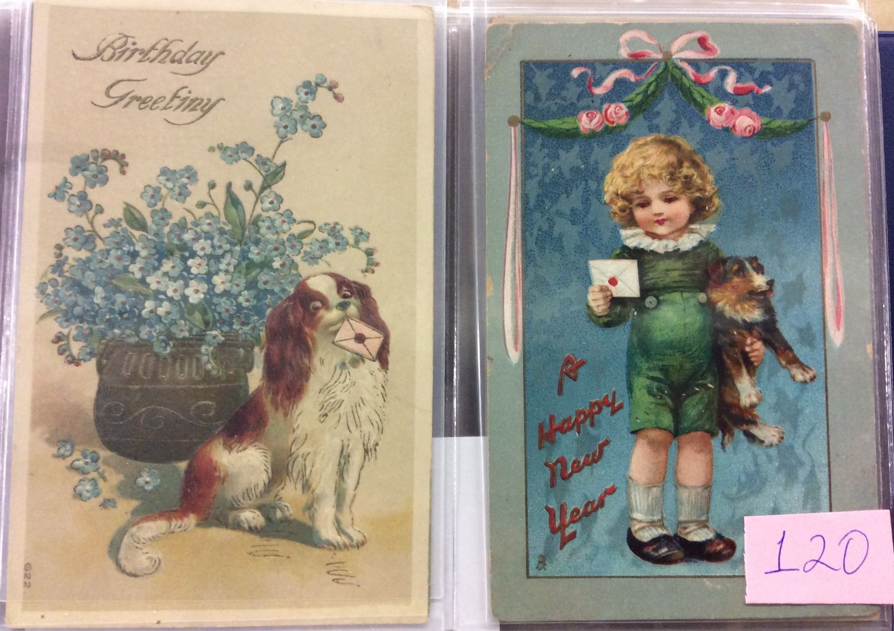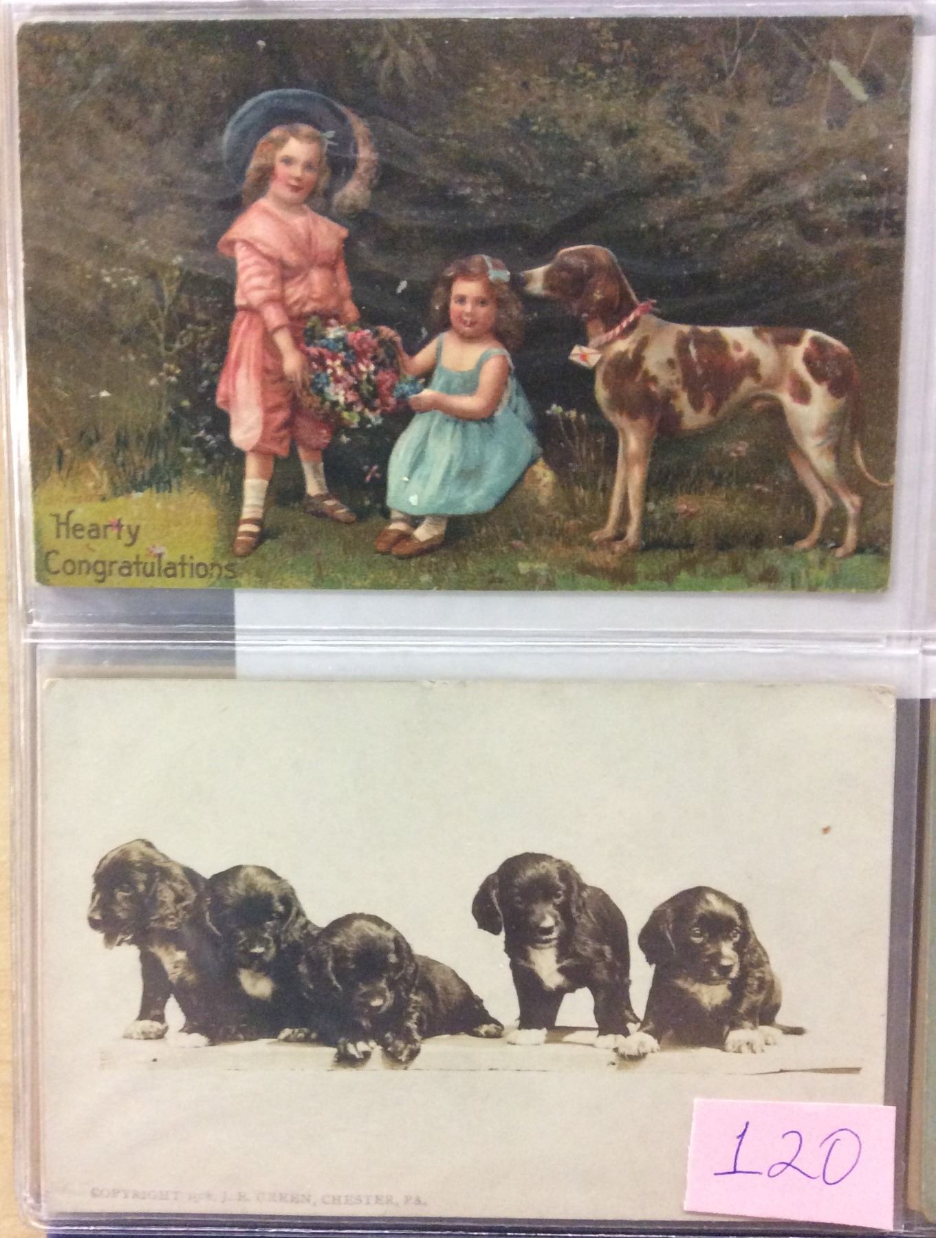 Over 80 postcards of dogs. Holidays, greetings, different breeds, etc.