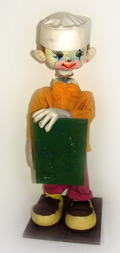 Animated window display «Boy with Blackboard». In working conition. 85cm high. Manufacturer unknown.