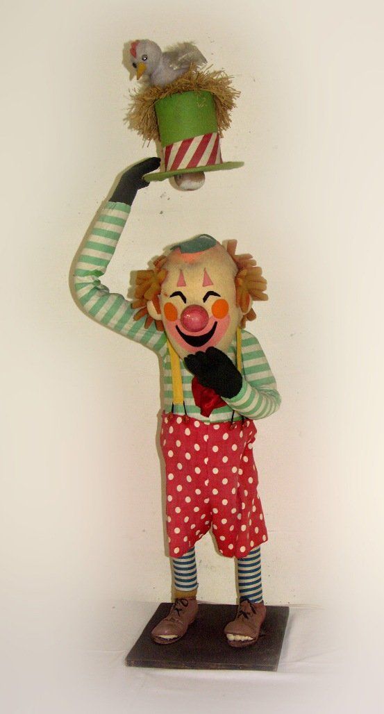 Animated window display «Clown» with hut. In working conition. 120cm high. Manufacturer unknown.
