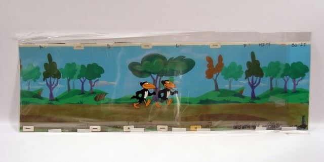 Two birds walking animation art. (approx. 34 1/2" x 10")
