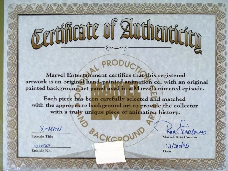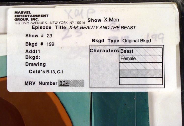 This is an original signed production cel and background from the hit series X-Men. Stan Lee signature is located on the right of cel in black sharpie. * * Under a cloud of increasing anti-mutant sentiment, Professor Xavier creates a haven at his Westchester mansion to train young mutants to use their powers for the benefit of humanity, and to prove mutants can be heroes. Xavier recruited Cyclops, Iceman, Angel, * Beast and Jean Grey calling them "X-Men" because they possessed the "x-gene", an ability normal humans lacked. Early issues introduced the team's arch enemy, Magneto and his Brotherhood of Evil Mutants, who would later battle the X-Men for years. * * I guess this is Beast's female friend * * * * * Original Animated Cel & Production BackgroundMedium: Hand painted acetate celDetails: Animation notations and peg holes * * Overall Size of the Cel: 10 1/2" x 12 1/2" * Overall Size of the background: 10 1/4" x 15" * Excellent Condition * This is an original hand-painted cel set-up used in the production of an episode of X-Men titled "Beauty and the Beast." Each one-of-a-kind set-up represents a slight change in position of the characters. When individually photographed and projected in rapid * succession, the images appear to move. * * To create production cels, the original animator's drawing is transferred onto an acetate cel (by hand-inking and/or photo copying). The cel is then hand-painted on the reverse side. The background accompanying this set-up is an original production background. * * * The cel and original background is ready to be matted and framed. The animators notations are located at the bottom of the cel and background. A Certificate of Authenticity from Marvel is on the back of background. * The Marvel Seal is located at the top right of the cel. The cel and background are in a protective sleeve. An information card about the episode is located at the top right of the protective sleeve. *