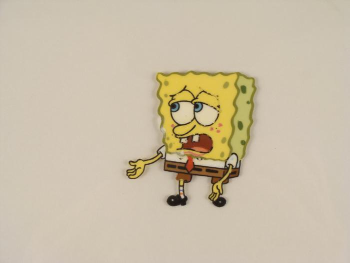 This original animation cel is from the Nickelodeon TV show SpongeBob Squarepants. The story takes place under the deep blue sea in Bikini Bottom, where SpongeBob resides. SpongeBob, who is a yellow, porous sponge, is your typical happy-go-lucky character, as he is always cheerful and enjoys making people laugh. Patrick Star, SpongeBob's neighbor who is a starfish, is your average children's show idiot, as he boasts knowing nothing and is often getting himself into ridiculous situations. Between the homes of these two lies the home of the miserable Squidward, a squid, who is known for being grouchy and playing tricks on SpongeBob and Patrick. Both SpongeBob and Squidward work at the Krusty Krab, a fast food business run by the greedy money-loving Mr. Krabs, a crab, the arch rival of the evil, possibly misunderstood, Plankton. Another neighbor, Sandy Cheeks, an athletic squirrel who normally wears an astronaut's space suit, was introduced in "Tea at the Treedome." She spends most of her time inventing and experimenting.What did SpongeBob do?Original Production Animated Cel Overall Size of Cel: 10 1/2" x 12 1/2" Very Good ConditionThis is an original hand-painted cel set-up used in the production of an episode of "SpongeBob SquarePants." Each one-of-a-kind set-up represents a slight change in position of the characters. When individually photographed and projected in rapid succession, the images appear to move.