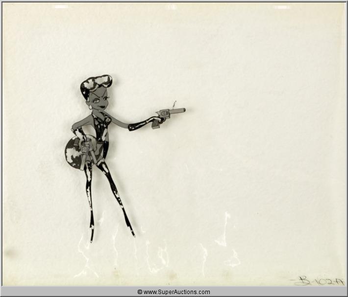 Animation Cel of Cartoon Character Woman Holding a Gun