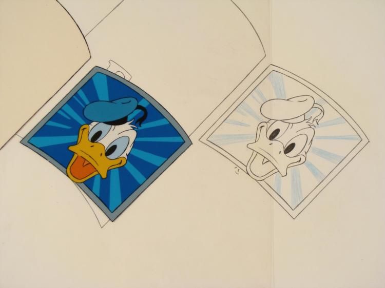 EXCEL * * * * * Original Animation Cel & DrawingMedium: Hand painted acetate celDetails: Animation notations and peg holes * * Original "rough" animation drawing, in non-photo blue and black pencil * * Size of cel: 10 1/2 x 12 1/2 inchesSize of drawing: 10 1/2 x 12 1/2 inches * * Condition: Very good * This is an original hand-painted cel set-up used in the production of the "Walt Disney Shows." Each one-of-a-kind set-up represents a slight change in position of the characters. When individually photographed and projected in rapid succession, the images appear * to move. To created production cels, the original animator's drawing is transferred onto an acetate cel (by hand-inking and/or photo copying). The cel is then hand-painted on the reverse side. * * * * * Traditional animation is a multi-step process which includes various types of art techniques. Drawings are a key part of the process, in which the animator creates the design and movement of the characters. Drawings are then transferred onto acetate cels * (by hand-inking and/or photo copying) to create a production cel, which is then hand painted on the back side, using paint colors chosen and approved by the creator of the series.