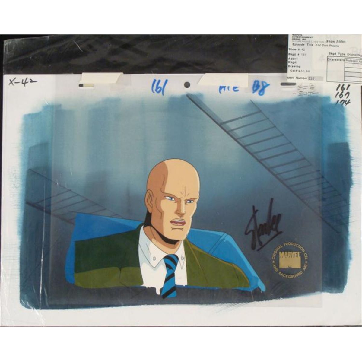 This is an original signed production cel and background from the hit series X-Men. Stan Lee signature is located on the bottom right of cel in black sharpie. * Under a cloud of increasing anti-mutant sentiment, Professor Xavier creates a haven at his Westchester mansion to train young mutants to use their powers for the benefit of humanity, and to prove mutants can be heroes. Xavier recruited Cyclops, Iceman, Angel, Beast and Jean Grey calling them "X-Men" because they possessed the "x-gene", an ability normal humans lacked. Early issues introduced the team's arch enemy, Magneto and his Brotherhood of Evil Mutants, who would later battle the X-Men for years. * This doesn't look good... * * Original Animated Cel Overall Size of the Cel: 10 1/2" x 12 1/2" Overall Size of the background: 10 1/4" x 14 1/4" Excellent Condition This is an original hand-painted cel set-up used in the production of an episode of X-Men titled "Dark Phoenix." Each one-of-a-kind set-up represents a slight change in position of the characters. When individually photographed and projected in rapid succession, the images appear to move. * To create production cels, the original animator's drawing is transferred onto an acetate cel (by hand-inking and/or photo copying). The cel is then hand-painted on the reverse side. The background accompanying this set-up is an original production background. * The cel and original background is ready to be matted and framed. The animators notations are located at the top of the cel and background. A certificate of Authenticity from Marvel is on the back of background. The Marvel Seal is located at the bottom right of the cel. The cel and background are in a protective sleeve An information card about the episode is located at the top right of the protective sleeve. *