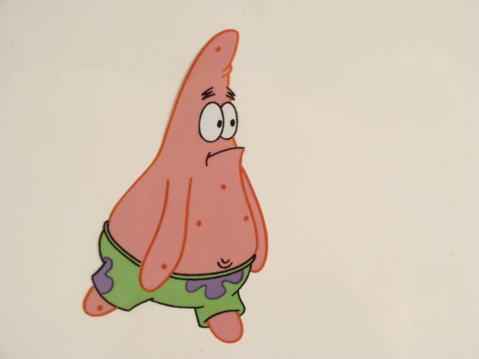 This original animation cel is from the Nickelodeon TV show SpongeBob Squarepants. The story takes place under the deep blue sea in Bikini Bottom, where SpongeBob resides. SpongeBob, who is a yellow, porous sponge, is your typical happy-go-lucky character, as he is always cheerful and enjoys making people laugh. Patrick Star, SpongeBob's neighbor who is a starfish, is your average children's show idiot, as he boasts knowing nothing and is often getting himself into ridiculous situations. Between the homes of these two lies the home of the miserable Squidward, a squid, who is known for being grouchy and playing tricks on SpongeBob and Patrick. Both SpongeBob and Squidward work at the Krusty Krab, a fast food business run by the greedy money-loving Mr. Krabs, a crab, the arch rival of the evil, possibly misunderstood, Plankton. Another neighbor, Sandy Cheeks, an athletic squirrel who normally wears an astronaut's space suit, was introduced in "Tea at the Treedome." She spends most of her time inventing and experimenting. Patrick is walking aroundOriginal Production Animated Cel Overall Size of Cel: 10 1/2" x 12 1/2" Very Good ConditionThis is an original hand-painted cel set-up used in the production of an episode of "SpongeBob SquarePants." Each one-of-a-kind set-up represents a slight change in position of the characters. When individually photographed and projected in rapid succession, the images appear to move.