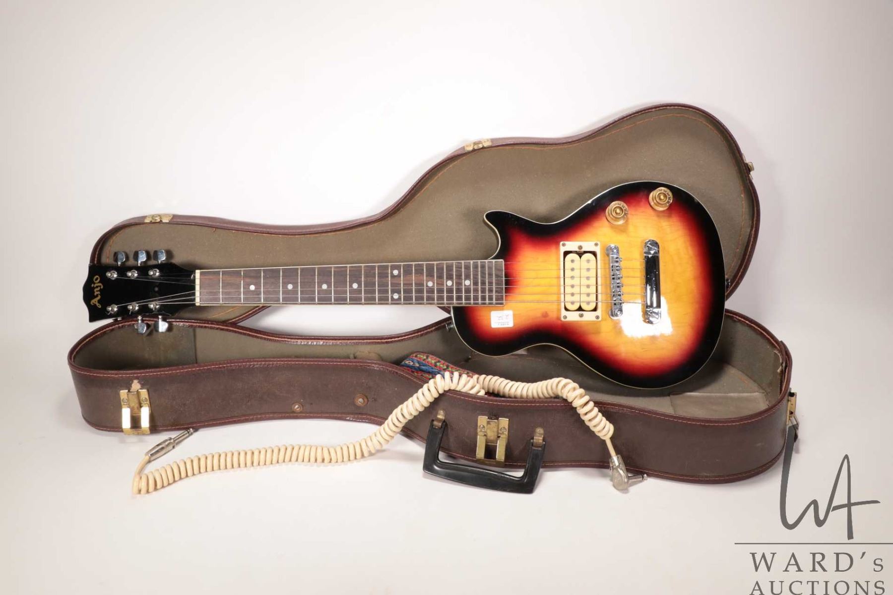 Anjo miniature LP style ( Les Paul copy) electric guitar, 31" in length and includes hard case