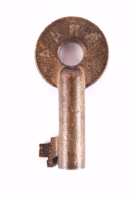 This is an original switch lock brass key forged by A&W Co for the AARR Ann Arbor Railroad. The piece is from circa 1890-1900. The key is marked, "AARR". The key is also marked with a "K". Measures 2"L.