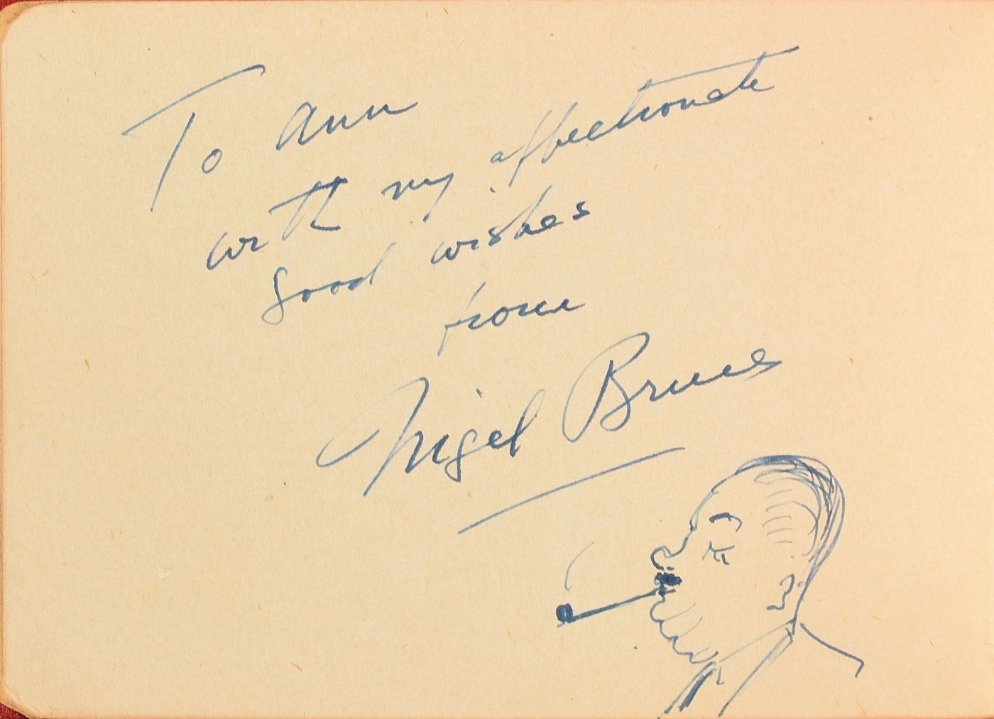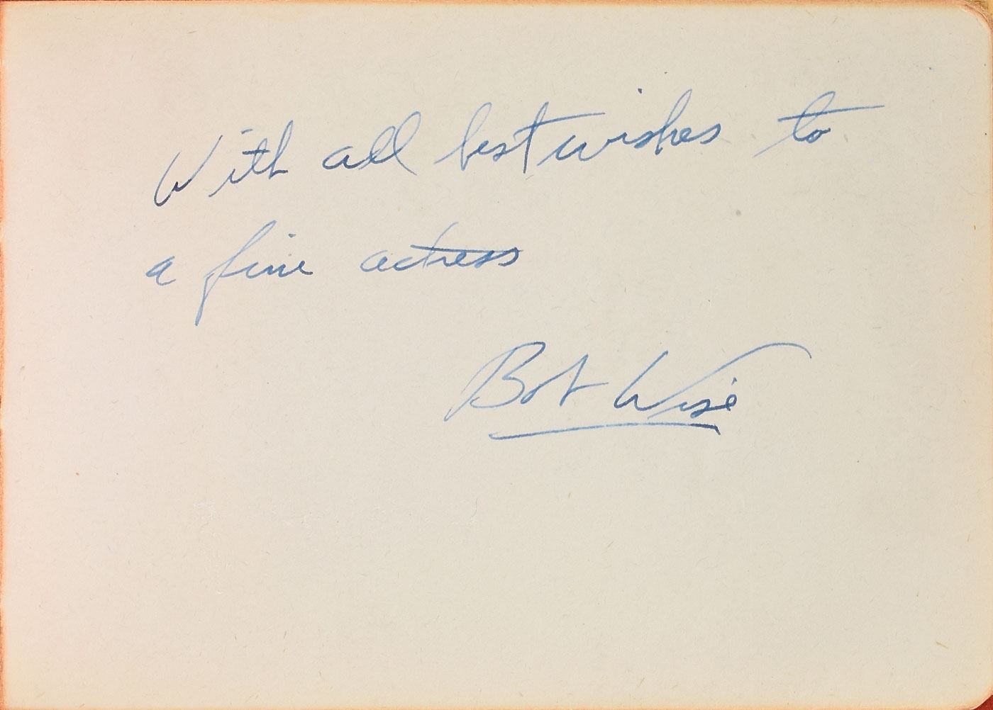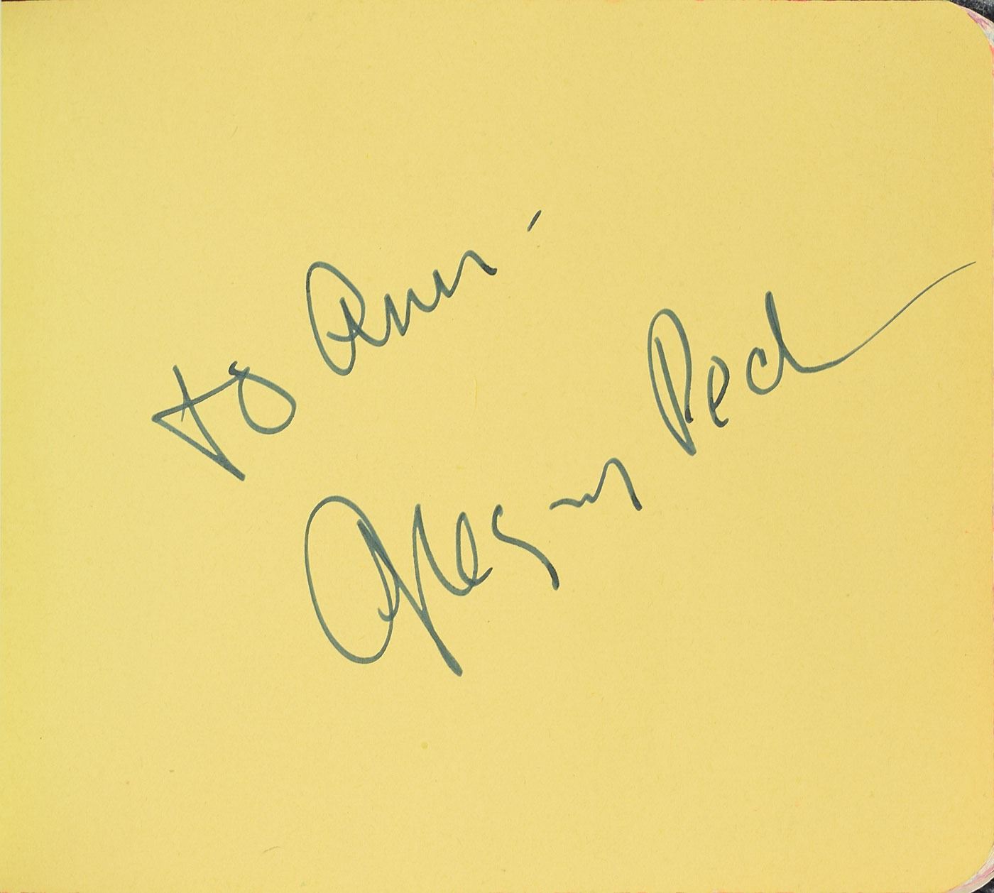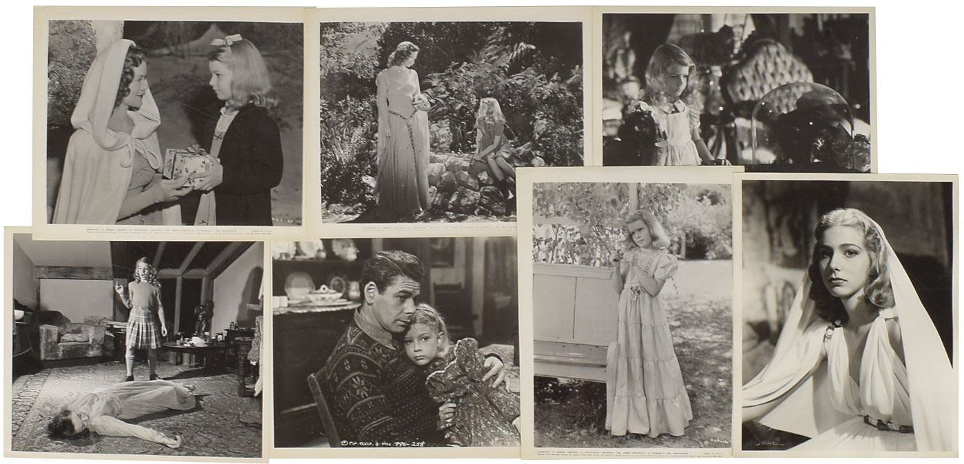 Impressive archive of material relating to the career of Ann Carter, a child actress best known for her roles in films like The Curse of the Cat People and The Two Mrs. Carrolls. The collection follows Carter’s career on radio, stage, and screen, and is highlighted by the host of autographs she obtained from several of her famous costars, including: a handsome matte-finish 11 x 14 studio portrait of Humphrey Bogart against a dark background, signed and inscribed in fountain pen, “For Ann Carter, a lovely little actress, Humphrey Bogart,” with the reverse bearing a Longworth–Warner Bros. photography stamp; and a pair of beautiful matte-finish 11 x 14 studio portraits of Barbara Stanwyck, both signed and inscribed in fountain pen, with one reading, “To Ann Carter—Many good wishes for my lovely ‘picture step daughter,’ Barbara Stanwyck” and “To Ann Carter, One of the loveliest ‘picture’ daughters I ever had, Fondly, Barbara Stanwyck,” with the latter bearing a John Engstead blindstamp. Also included is a pair of leather-bound autograph books, which Carter had signed by several of her fellow cast members from films like The Two Mrs. Carrolls, The Fabulous Dorseys, and The Virginian; signers of the dark blue autograph book include: Gregory Peck, Elizabeth Taylor, Cary Grant (2), Cedric Hardwicke, Dana Andrews, Ida Lupino, and Ray Milland; autographs in the red leather-bound autograph book include: Nigel Bruce (adding a self-portrait sketch), Barbara Stanwyck, Stan Laurel and Oliver Hardy, and Robert Wise, who directed Carter in The Curse of the Cat People.