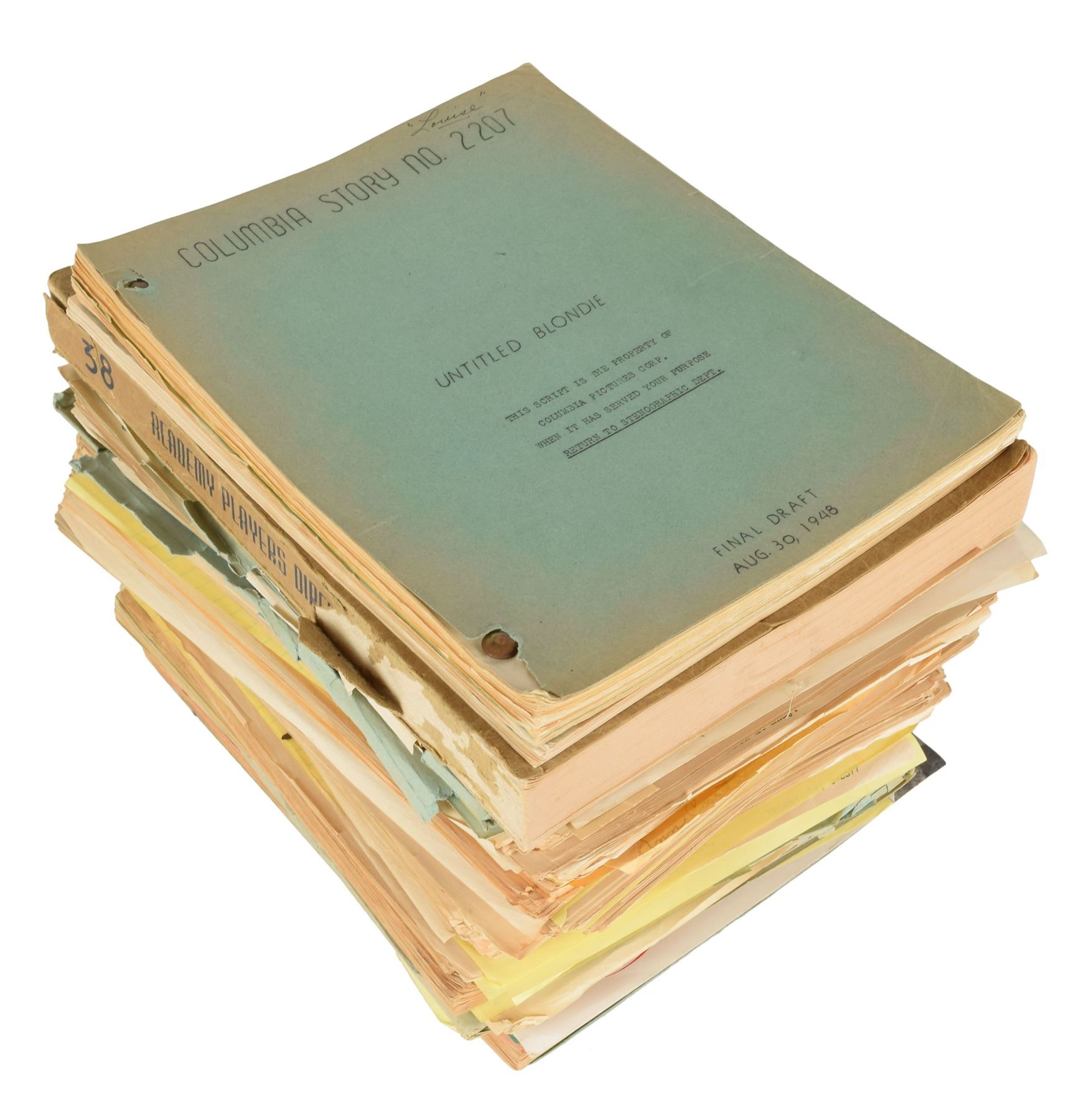 The archive also features over 100 vintage glossy and matte-finish publicity stills spanning Carter’s entire filmography, including images of her with Bing Crosby from A Connecticut Yankee in King Arthur's Court; hundreds of newspaper clippings chronicling her career over the decades; eighteen early movie gossip publications that mention or feature Carter, including: Movie Story Magazine, Liberty, Lawrence Welk, Screen Guide, Parents’ Magazine, Time Magazine, Radio and Television Life, The American Magazine, Screenland, and Screen Romances; complete and partial shooting scripts for the films Blondie Hits the Jackpot (also includes two call sheets), The Two Mrs. Carrolls, A Love Story, Commandos Strike at Dawn, The Virginian, Into the Night, and The North Star (with press book); various interview, commercial, and radio transcripts for “Melody Time”; scripts for her RKO radio show with Debbie Reynolds; a revised script for an episode of the Edgar Bergen and Charlie McCarthy Show; a script for an episode of The Danny Thomas Show; a copy of Pictures of Tomorrow and Directors’ Numbers from September 1947; issue 38 of the 1944 The Players Directory, which shows Carter on page 475; and a collection of scripts for the following stage adaptations: Jane Eyre, Mother Wore Tights, The Green Years, The Perfect Marriage, Prevention Preferred, This Is Hollywood, It’s a Wonderful Life, High Barbaree, Great Expectations, Mad About Music, Daisy Kenyon, Academy Award, Margie, The Yearling, Stars Over Hollywood, Mr. Blandings Builds His Dream House, Milady’s Boudoir, I Remember Mama, and Hollywood Star Time. In overall very good to fine condition. Despite only acting in film for little more than a decade, Carter amassed a remarkable resume that saw her sharing the screen with some of Hollywood's biggest draws. Carter, who likewise enjoyed considerable success starring in many Lux Radio Theatre programs, ultimately left acting due to her polio rehabilitation—she contracted the disease in the summer of 1948—and to continue education on her way to becoming a schoolteacher. The breadth of material found here not only authentically represents the pride felt by Carter’s parents, but also offers a unique glimpse into the busy, no doubt hectic, career of a popular child actress.