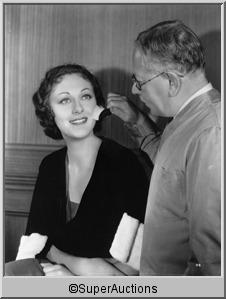 Ann Dvorak from The Max Factor Collection / (1) 8 x 10 Nitrate Negative No. 98 with Ann Dvorak Posing while Max Factor Uses Face Powder Brush