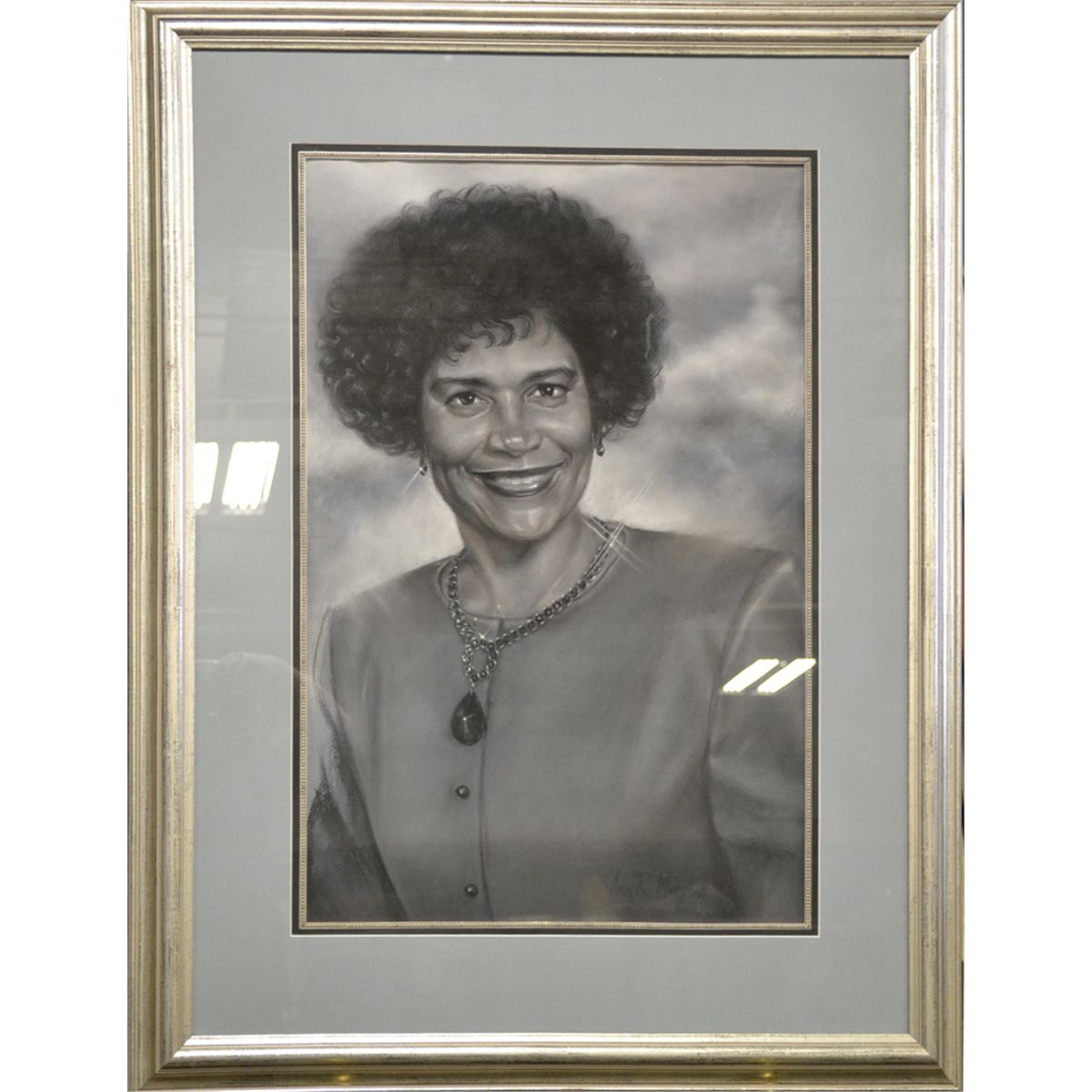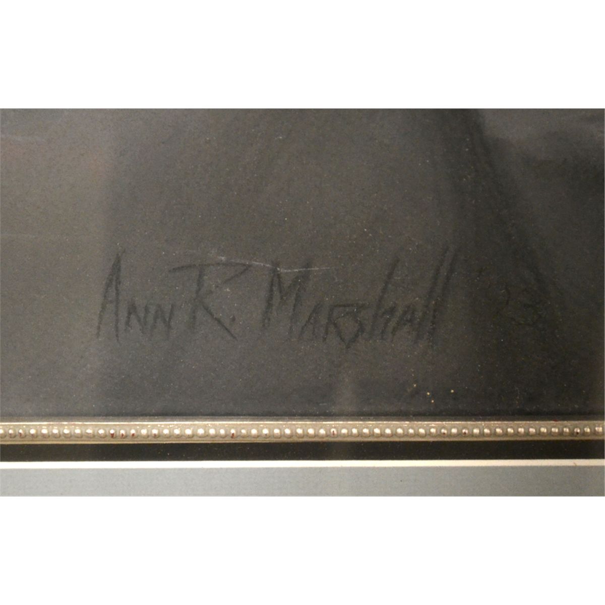 Finely drawn to depict a smiling woman with pendant necklace. Signed Ann K. Marshall in LR. Double matted and reinforced with metal beading, and framed in a painted wood frame and behind glass. 44.5" H x 34.25" W, including the frame. Circa 20th century. Private collection Ft. Gratiot, MI.