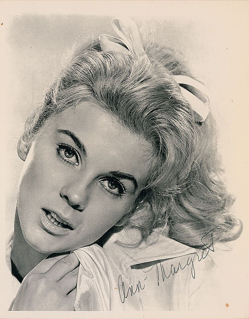 Cardstock 8 x 10 close-up photo of the actress from early in her career, signed in black felt tip. In fine condition, with a small spot to lower right.