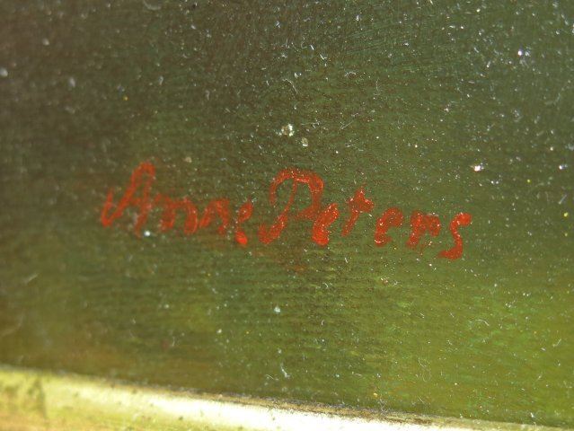 Oil on canvas. Framed. Signed lower left. Ann Peters, Swiss (1843-1926). Approx. 18" H x 22" W unframed, 24" H x 28" W framed. Relined.