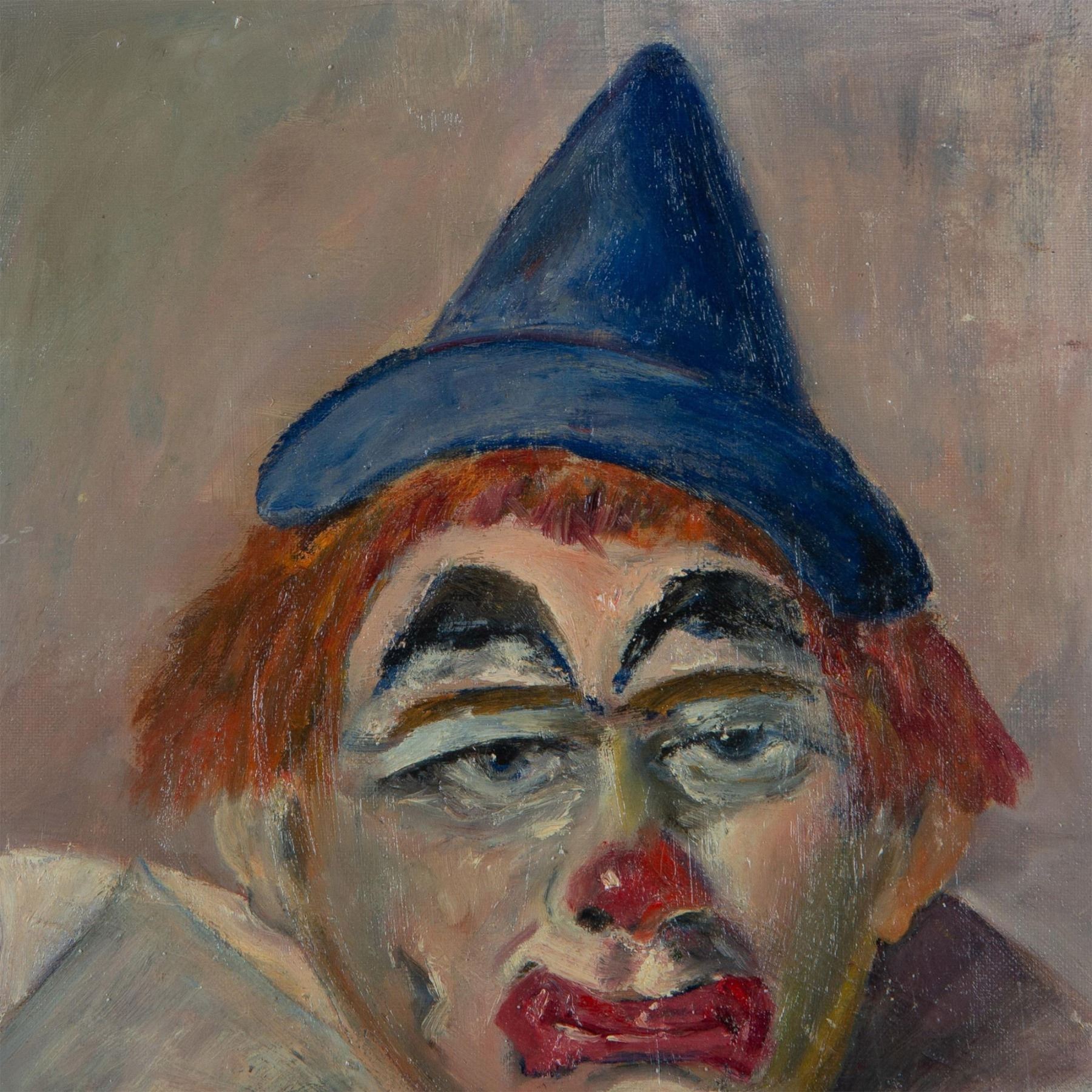 Ann Simons, Original Oil on Board, Portrait of Clown, Signed