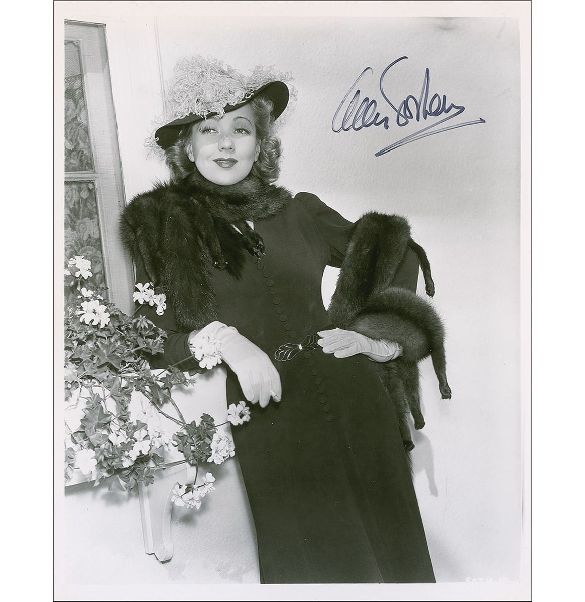 Glossy 8 x 10 photo of Sothern wrapped in mink, signed in black felt tip. In fine condition, with some slightly irregular ink adhesion to the beginning of the signature.
