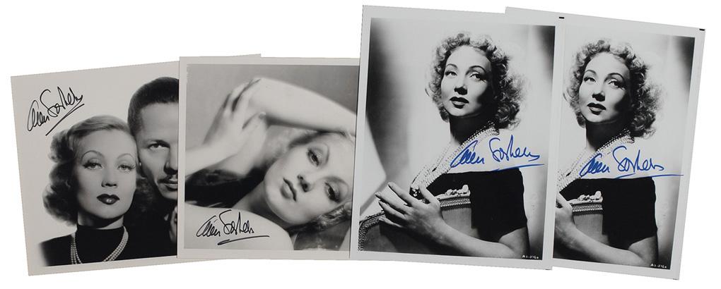 Lot of four signed photos. Two different satin-finish 10 x 8 photos and two identical glossy 8 x 10 photos, signed in black and blue felt tip respectively. In fine condition.